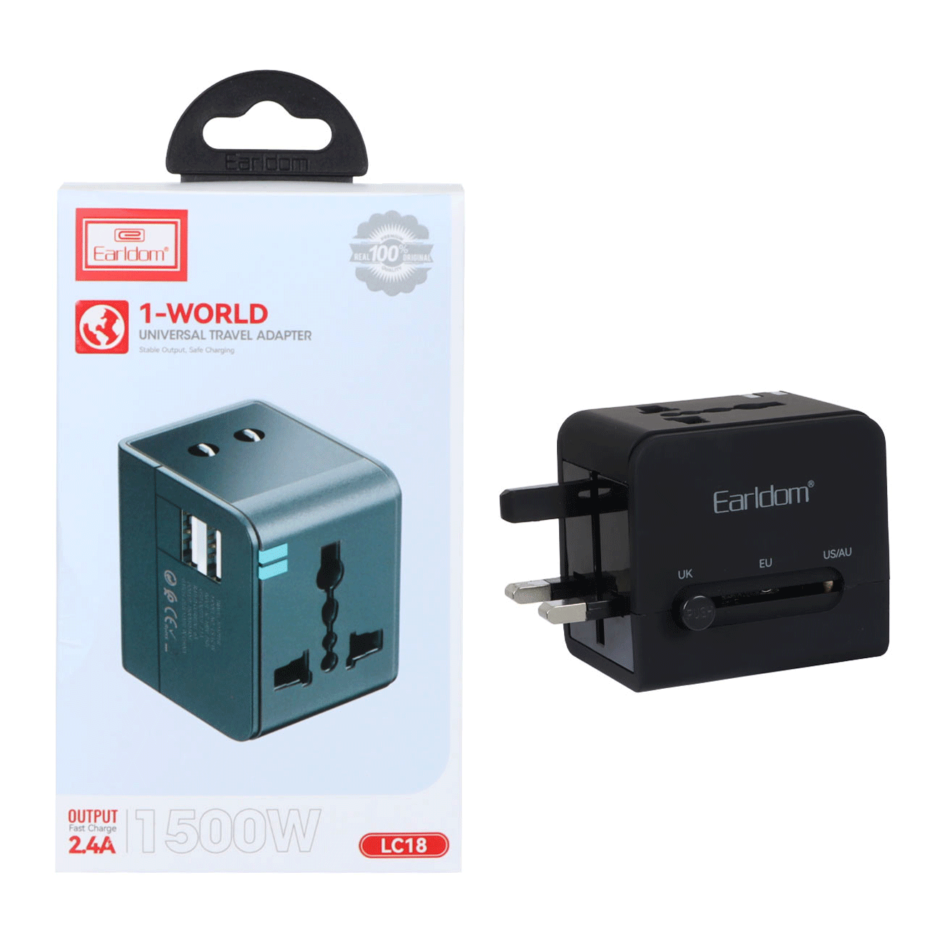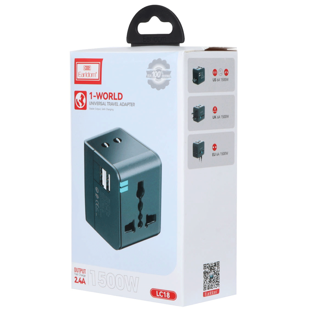 چندراهی و مبدل برق یو اس بی 2.4 آمپر و سوکت برق با دوشاخههای مختلف 1500 وات ارلدام ES-LC18