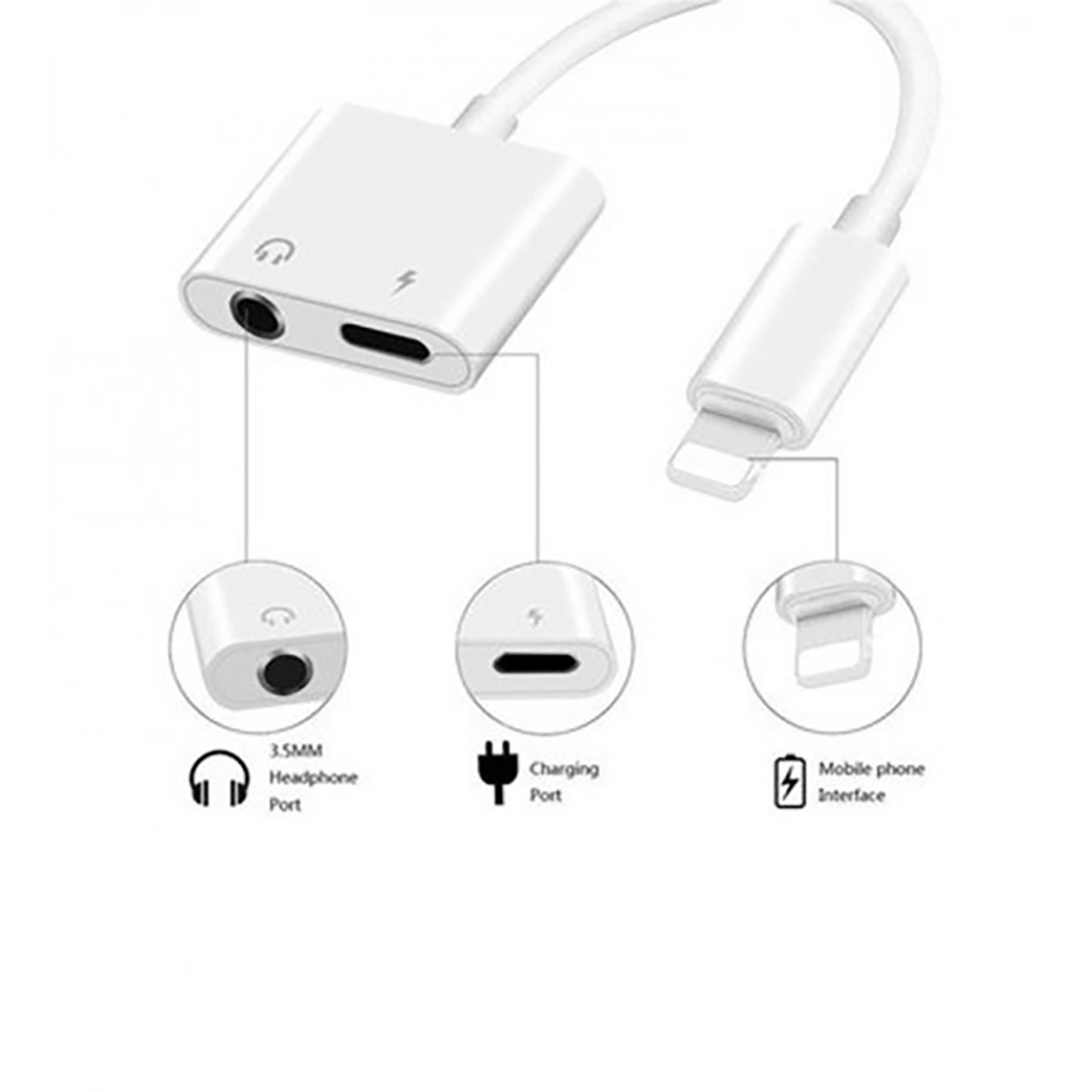 مبدل و رابط شارژ و صدای آیفونی و جک 3.5 میلی متری از مواد باکیفیت و مقاوم ساخته شده و کابل آن به طول 15 سانتیمتر ضد گره خوردگی و مقاوم بوده تا محافظی در برابر هرگونه خرابی ناشی از برخورد اجسام تیز یا ضربه در هنگام حمل و نقل و استفاده باشد. طراحی بسیار جمعوجوری دارد و به راحتی درون جیب لباس یا جیب کولهپشتی جا میگیرد.