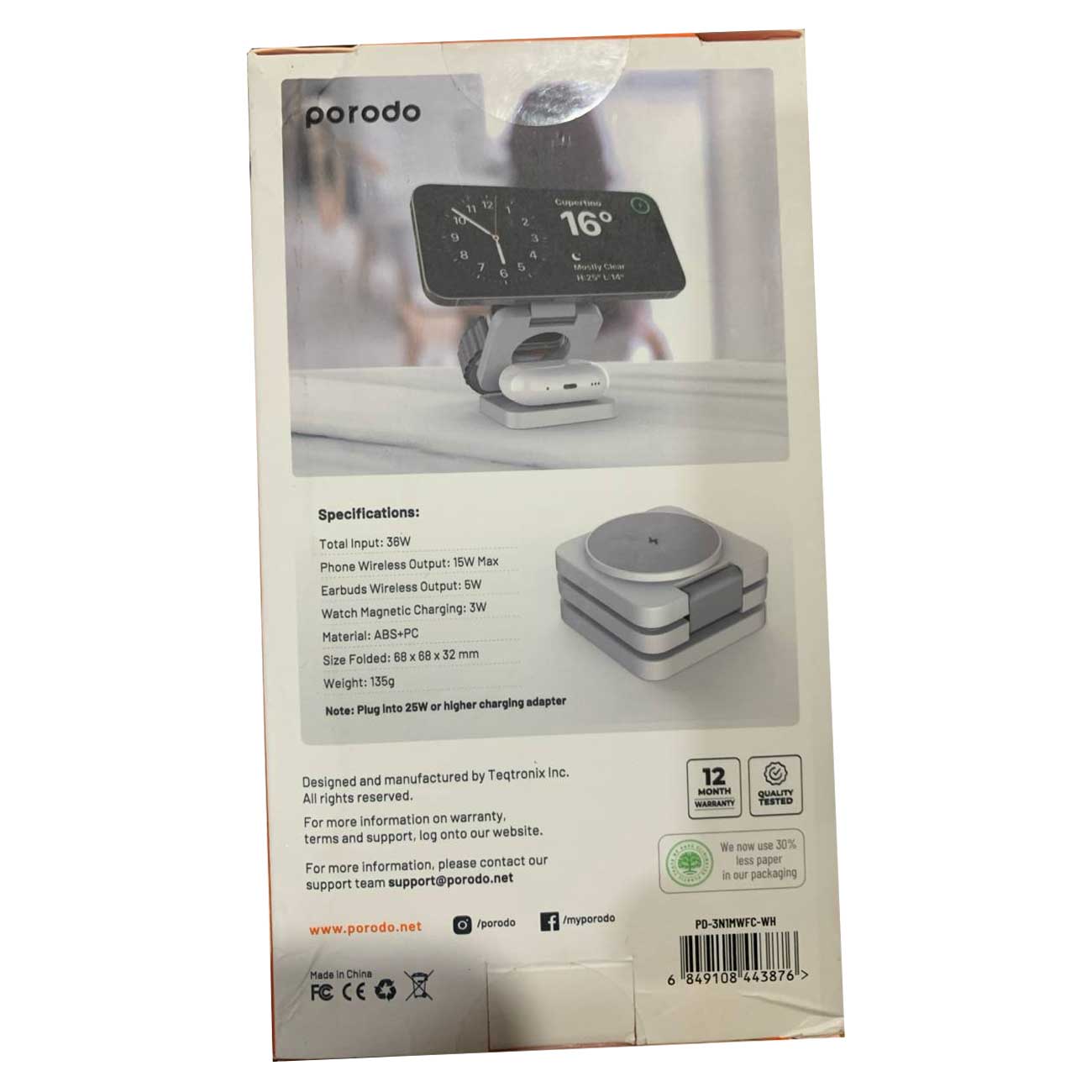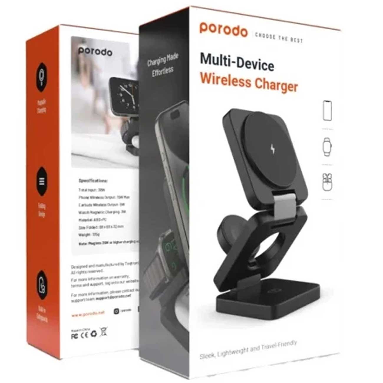 شارژر وایرلس چند کاره پورودو مدل PD-3N1MWFC-BK