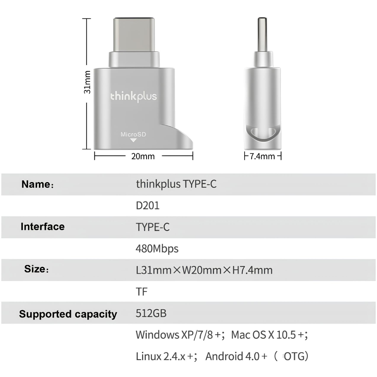 کارت خوان با کانکتور تایپ سی لنوو مدل Thinkplus D201