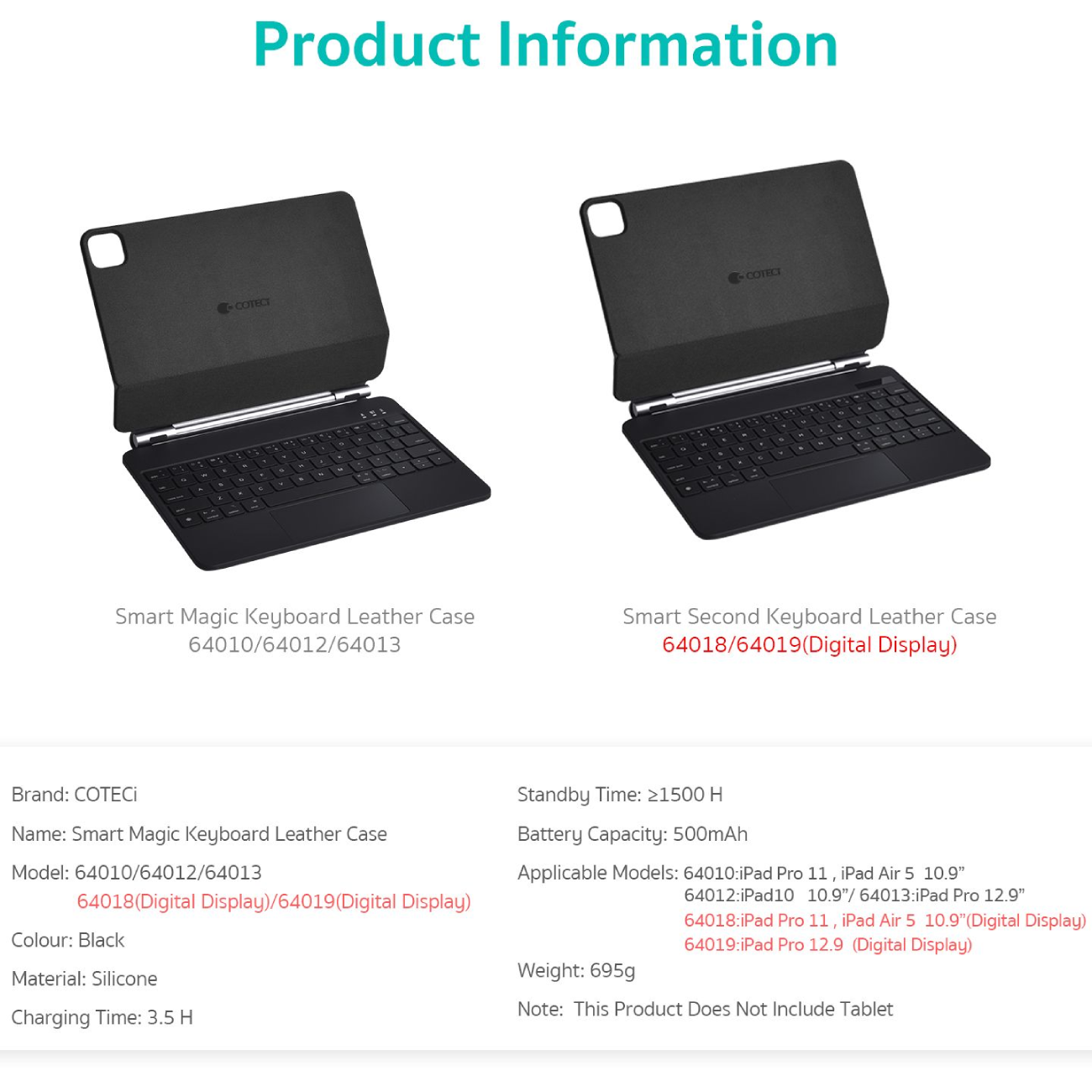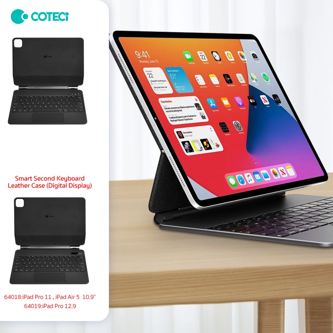 COTECi 64018 Smart Second Keyboard Leather Case (Digital display) iPad Pro 11 / iPad Air 10.9 inch