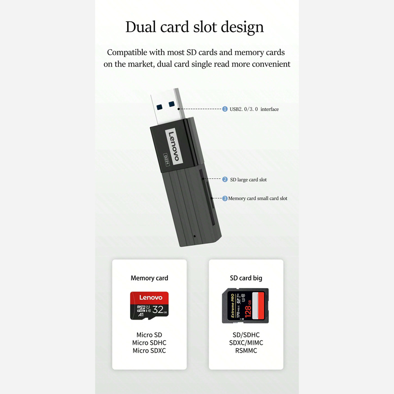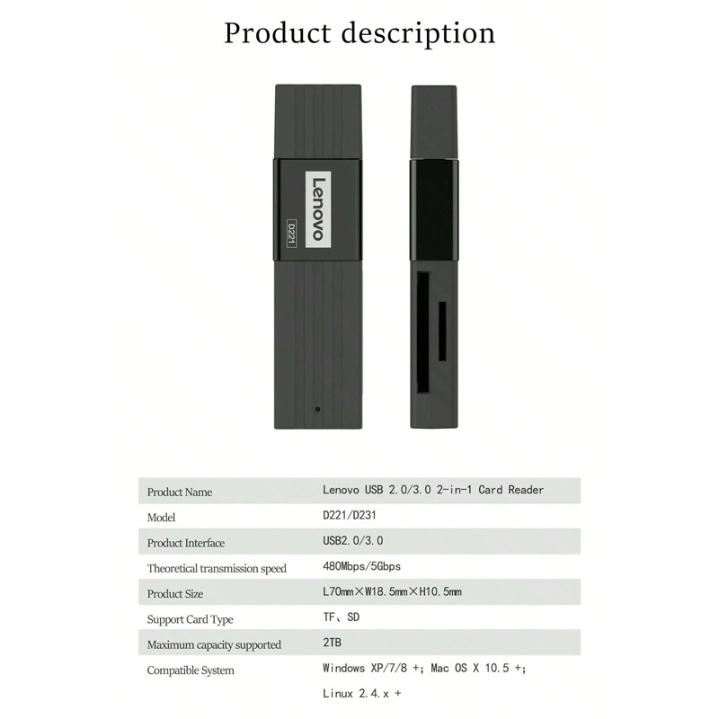 Lenovo D221 2 in 1 480Mbps USB 2.0 Card Reader (Black)
