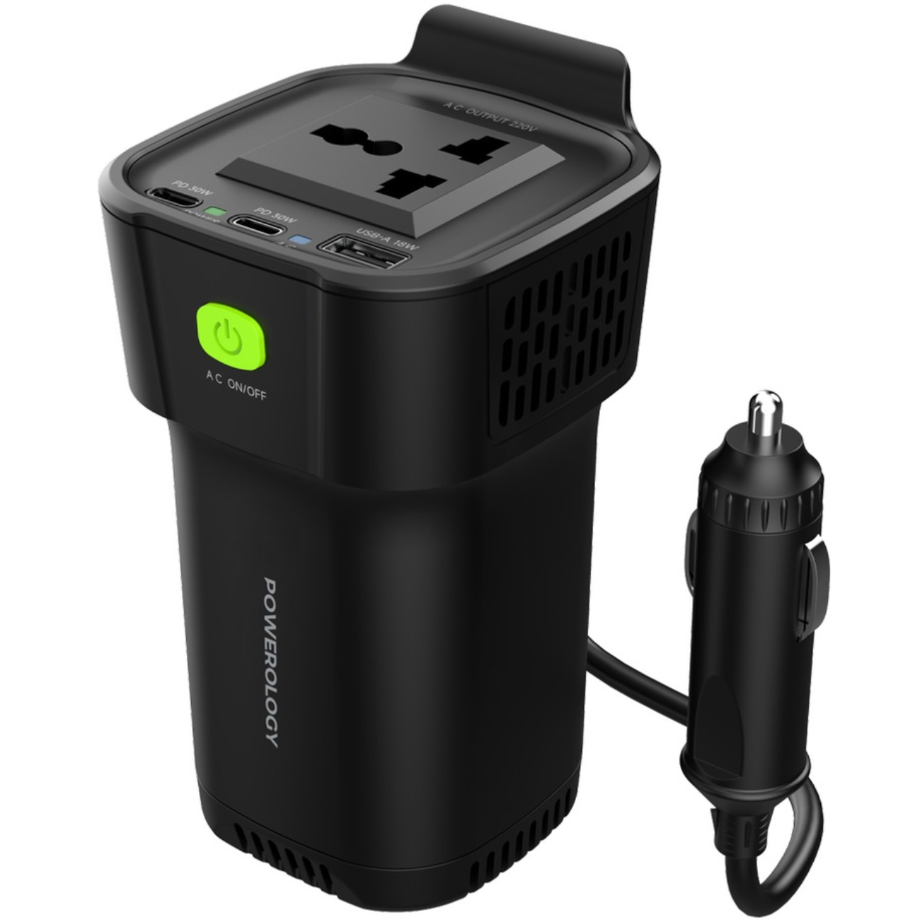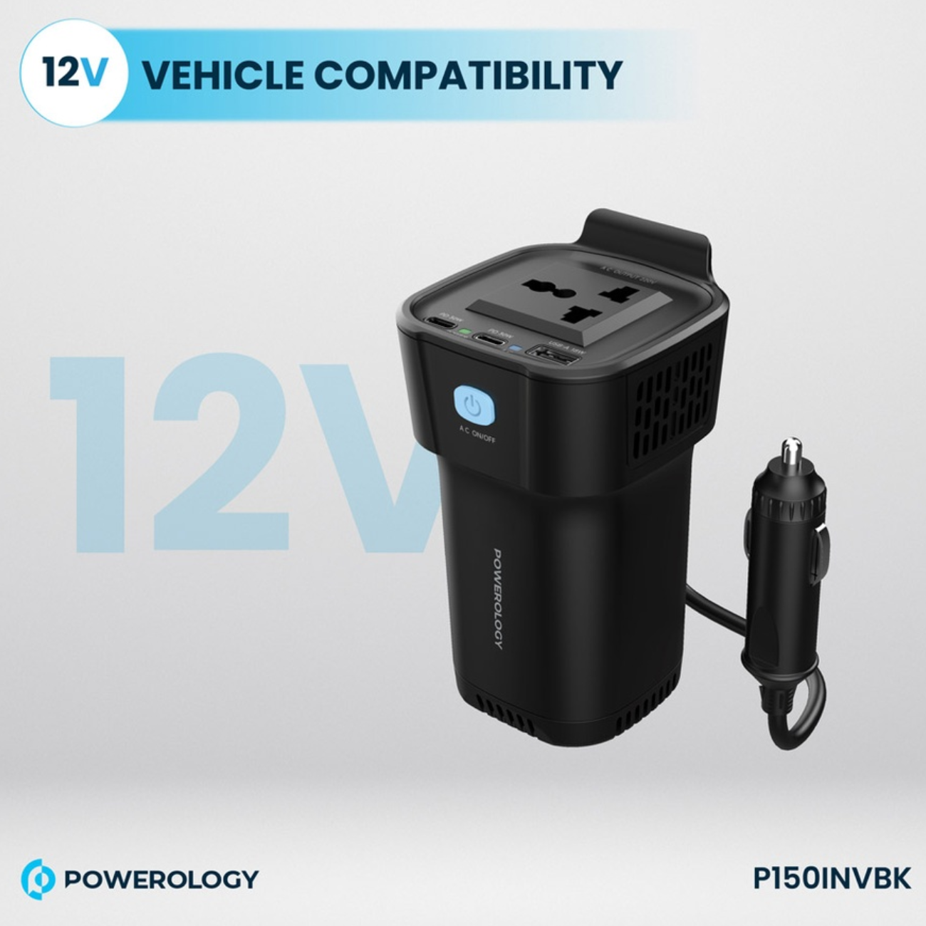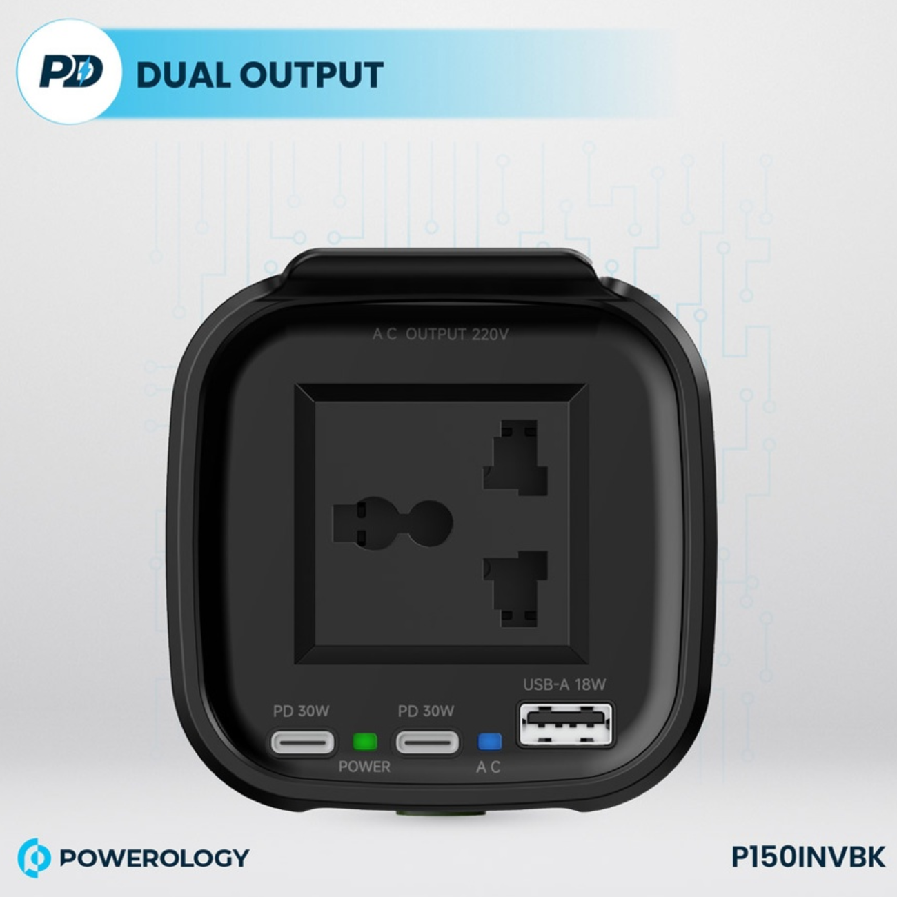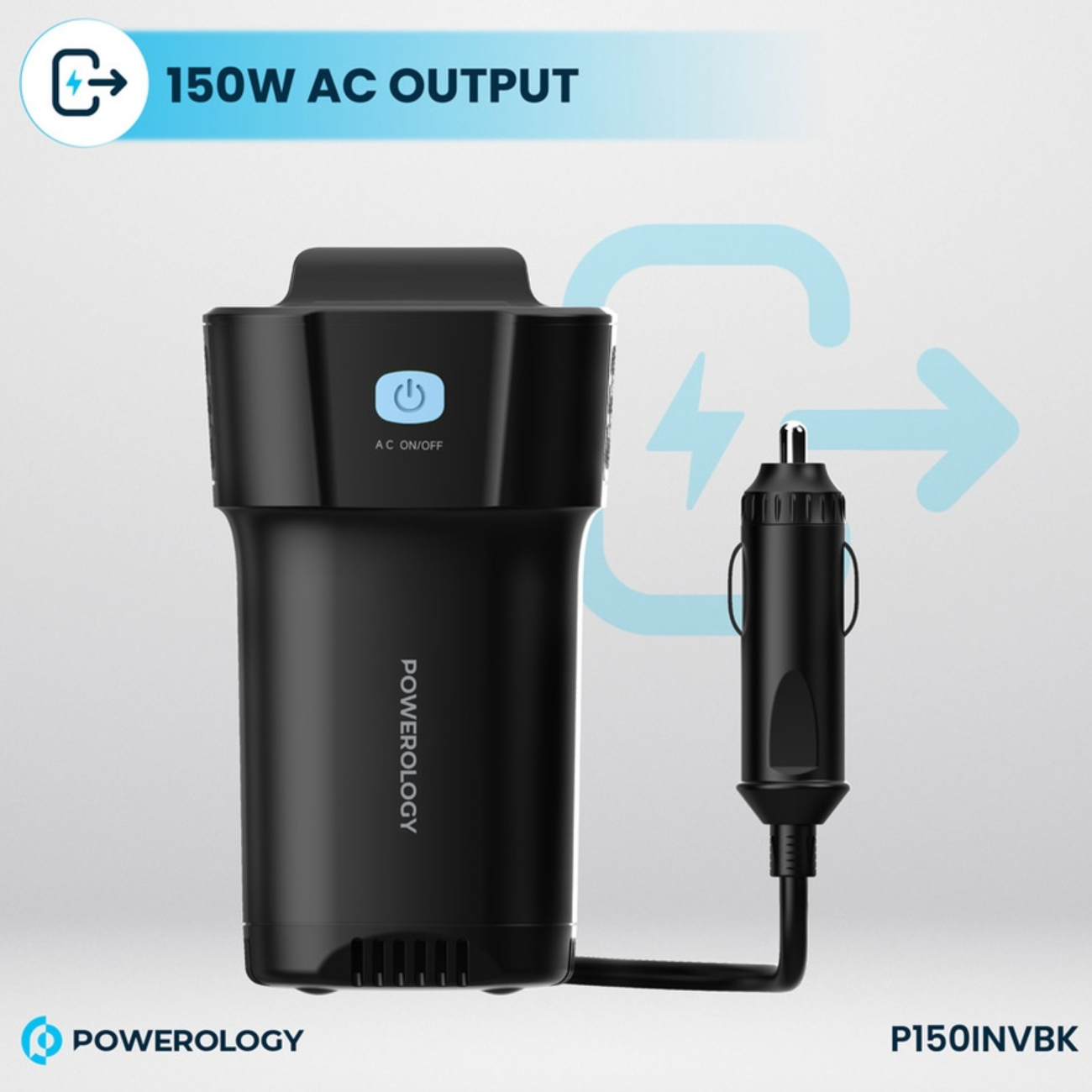 Powerology P150INVBK 150W Inverter AC Universal USB A 2type-C DC Car 12V10A