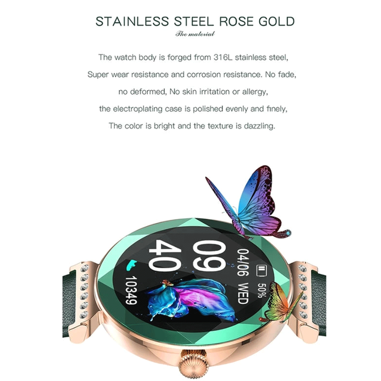 ساعت هوشمند زنانه و دخترانه گرین GNSWAROSWBL