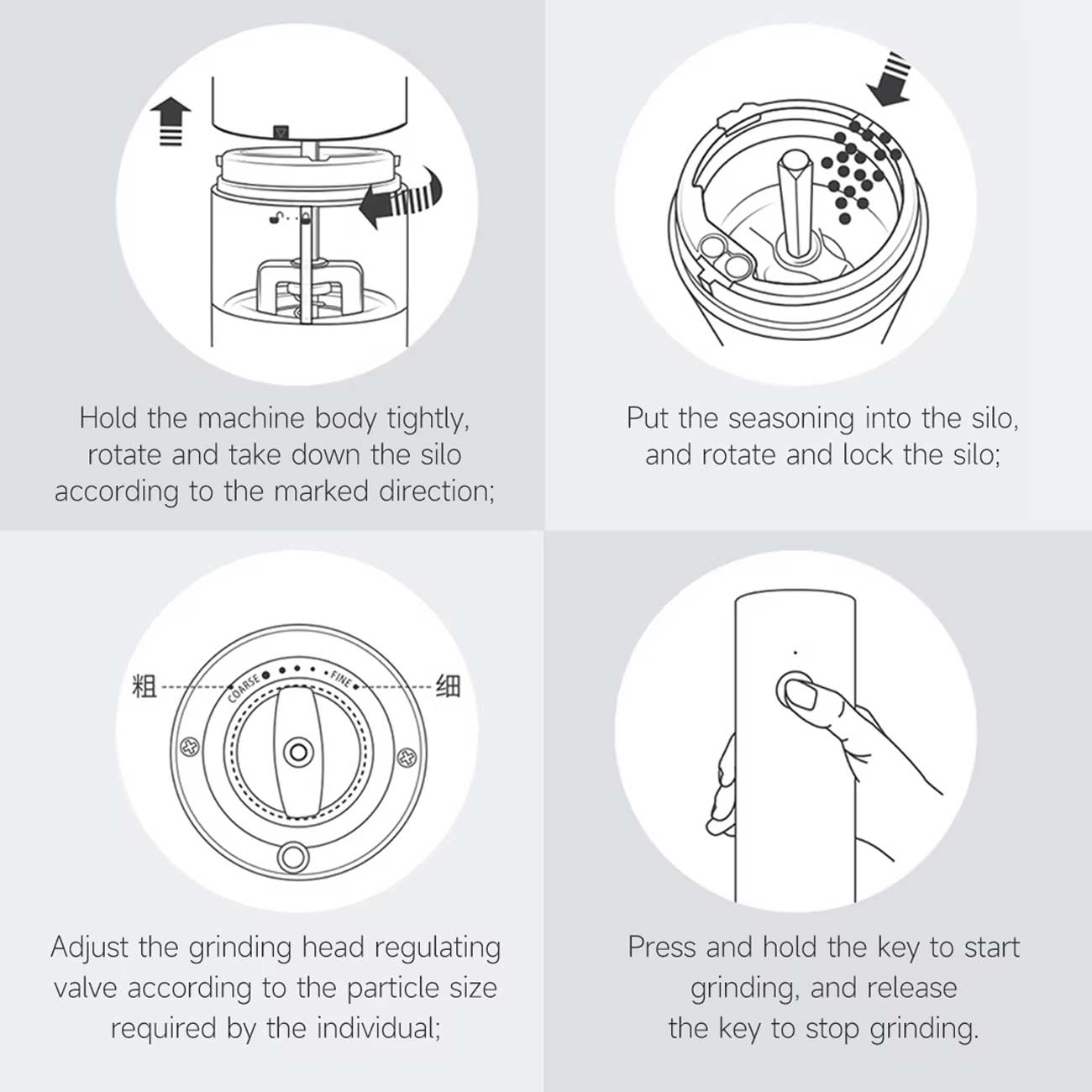 | آسیاب نمک، فلفل و انواع ادویه شارژی سرکلجوی شیائومی | |