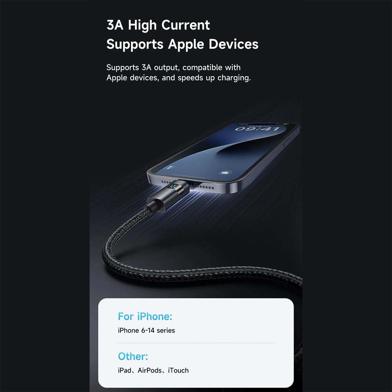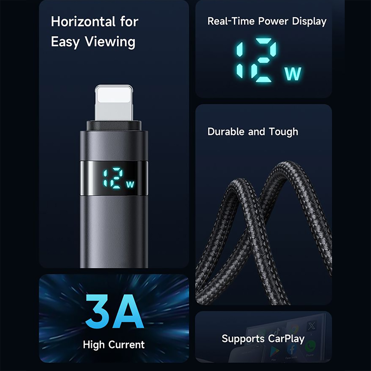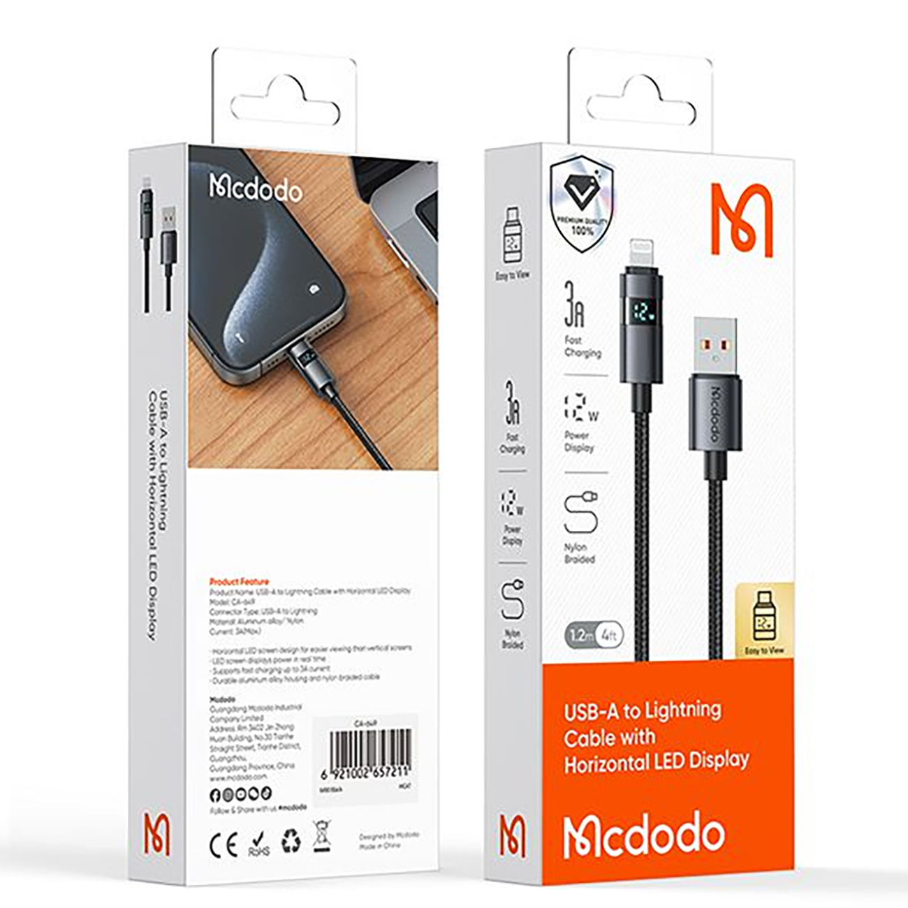 MCDODO CA-649 1.2 Meter Phone 3A Cable with Horizontal LED Display