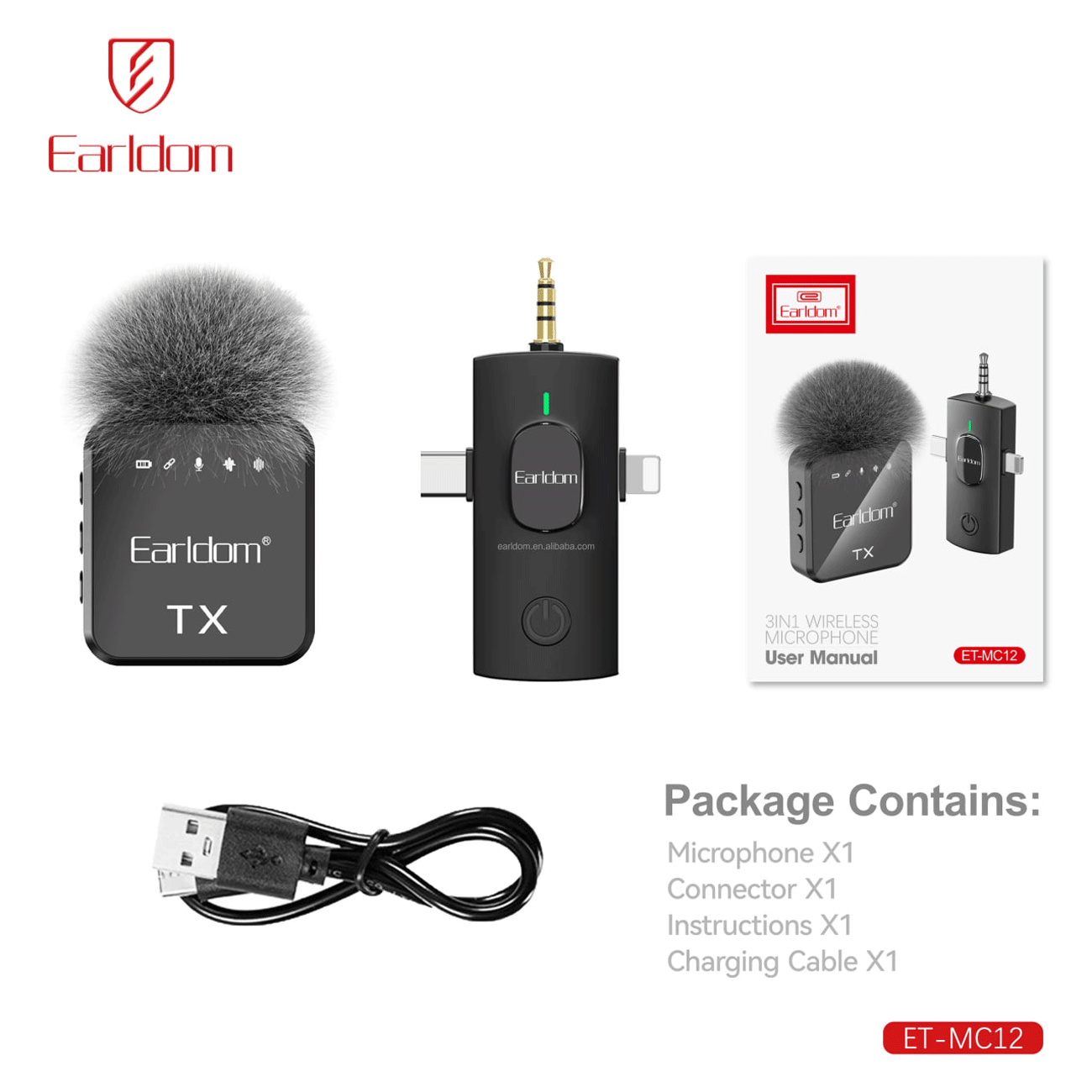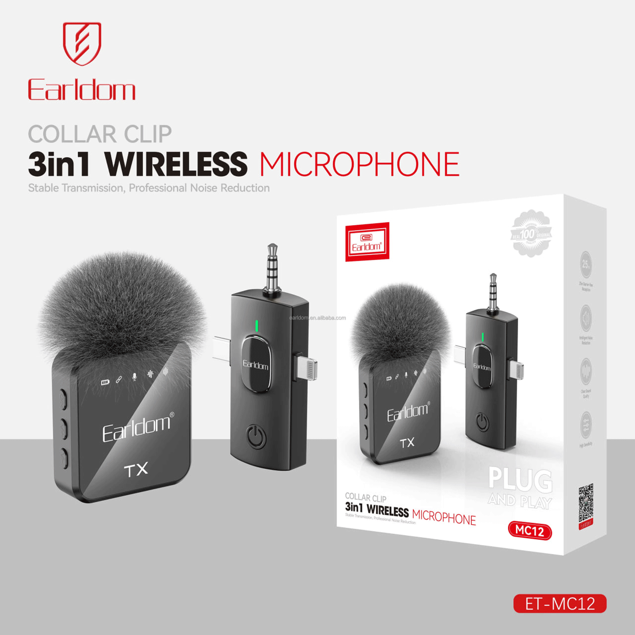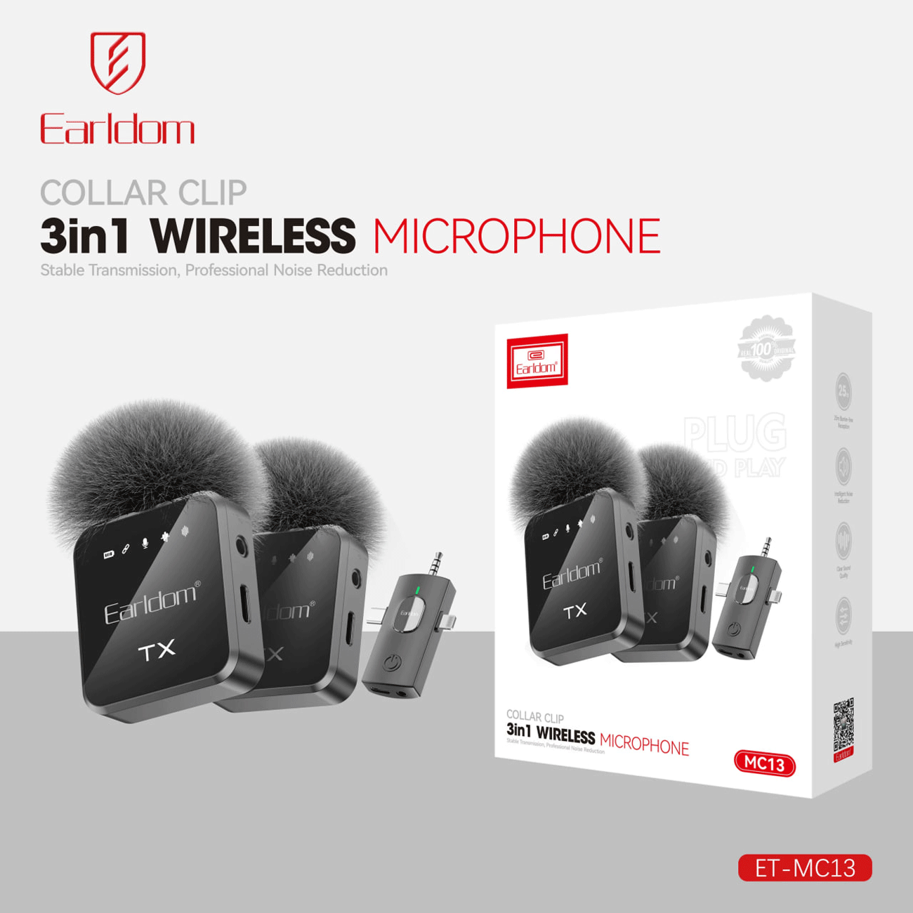 Earldom Collar Clip 3 in 1 Wireless Microphone with 2 Mic-MC-13