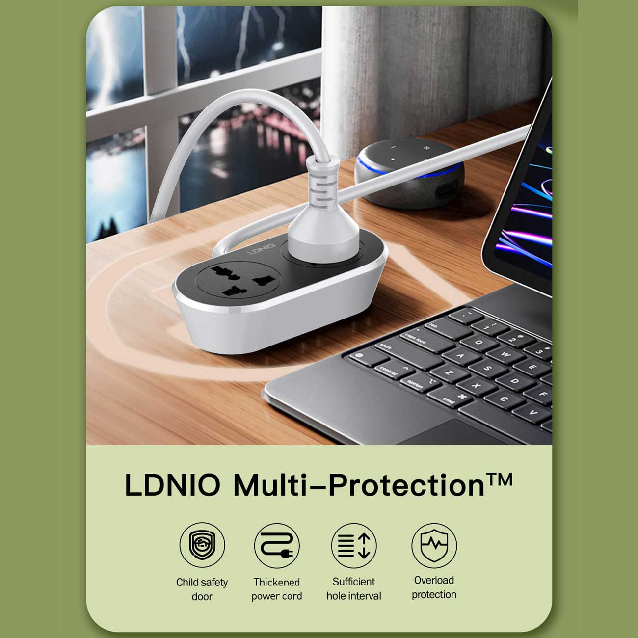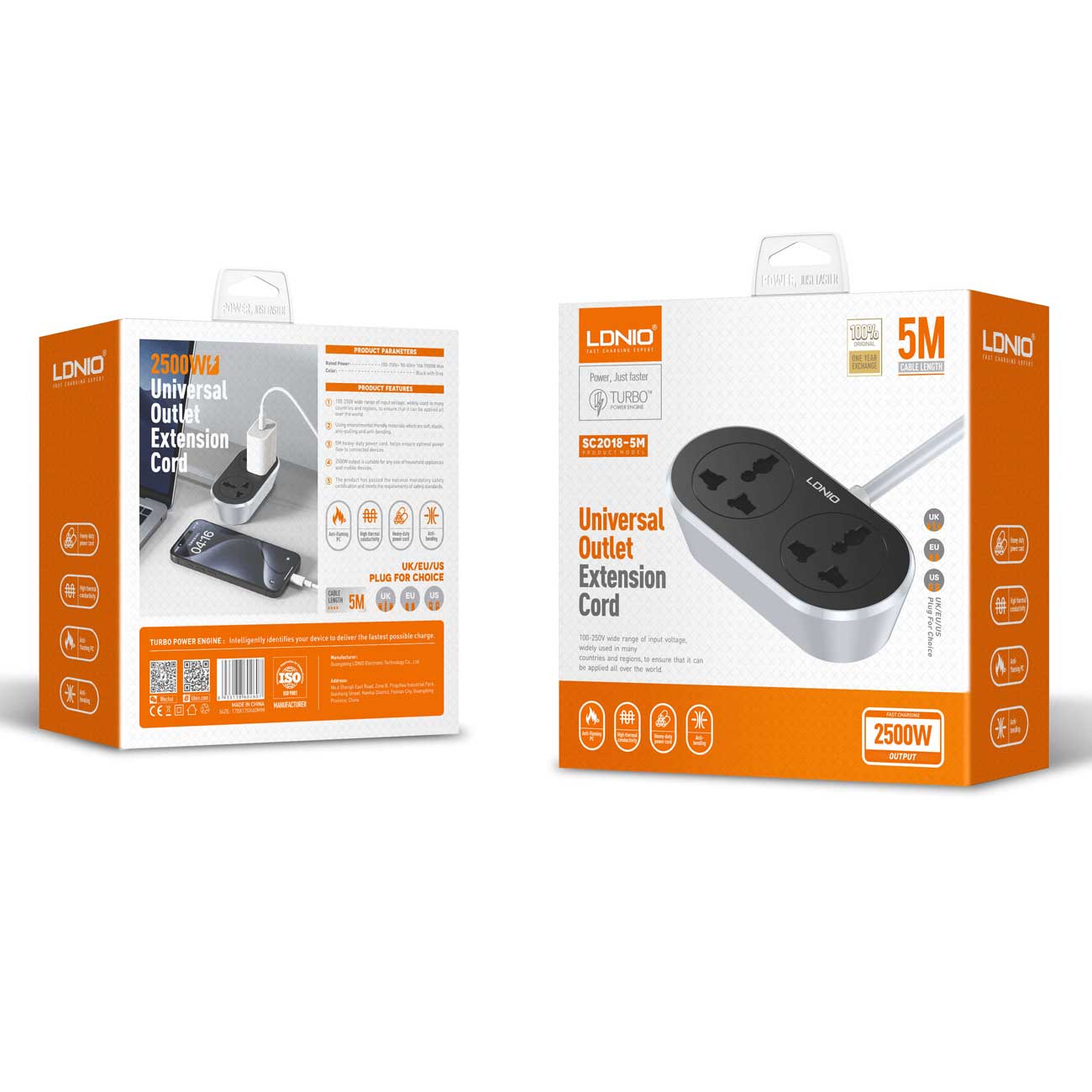 LDNIO SC2018 2500W 2 AC Outlet Universal 10M Extension Cord Power Socket