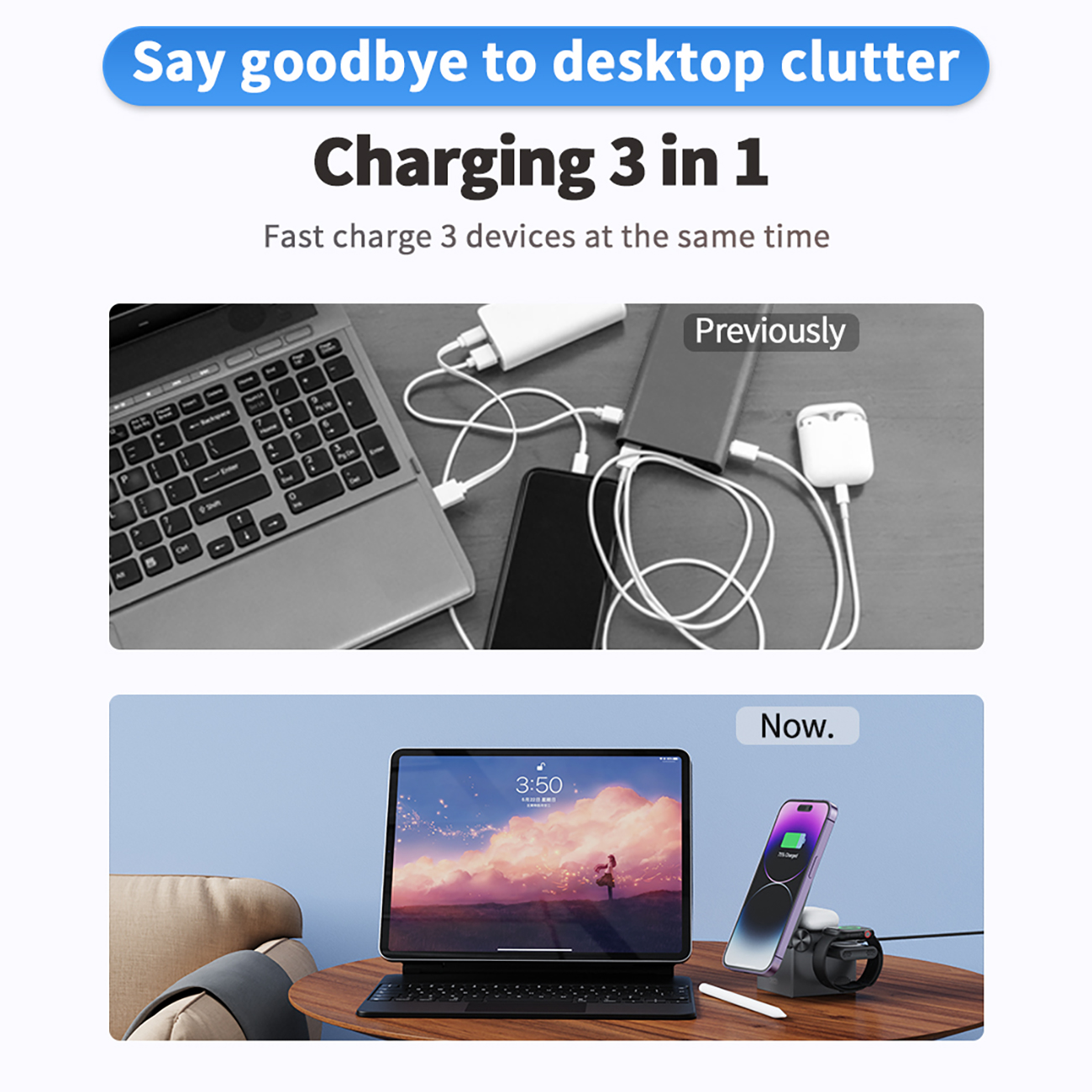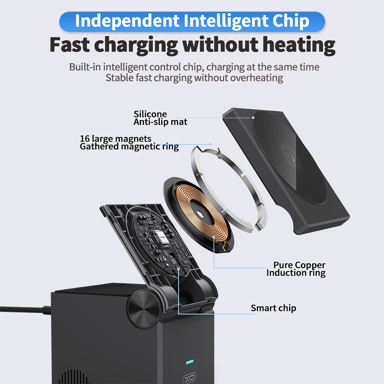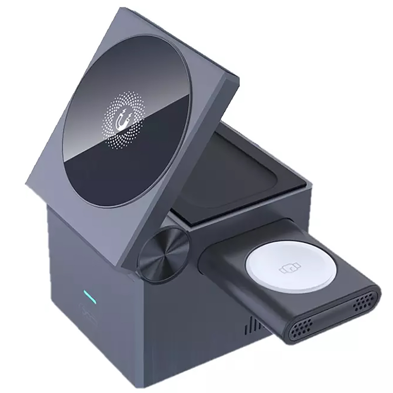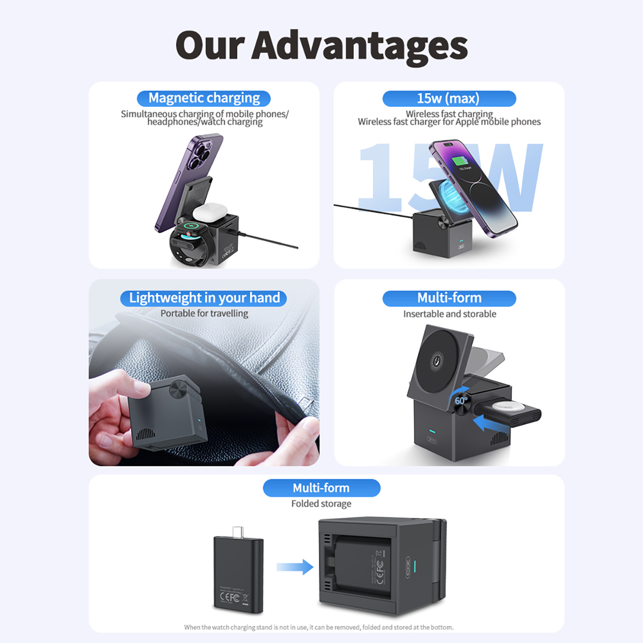 شارژر وایرلس رومیزی گوشی آیفون 12 تا 15 سه کاره 15 وات ایکس او CX027