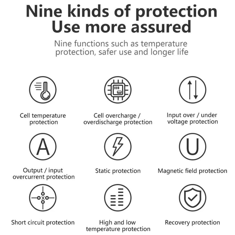 | ویژگی های ایمنی | حفاظت در برابر شارژ/دشارژ بیش از حد، دمای بالا، اتصال کوتاه، جریان بالا |