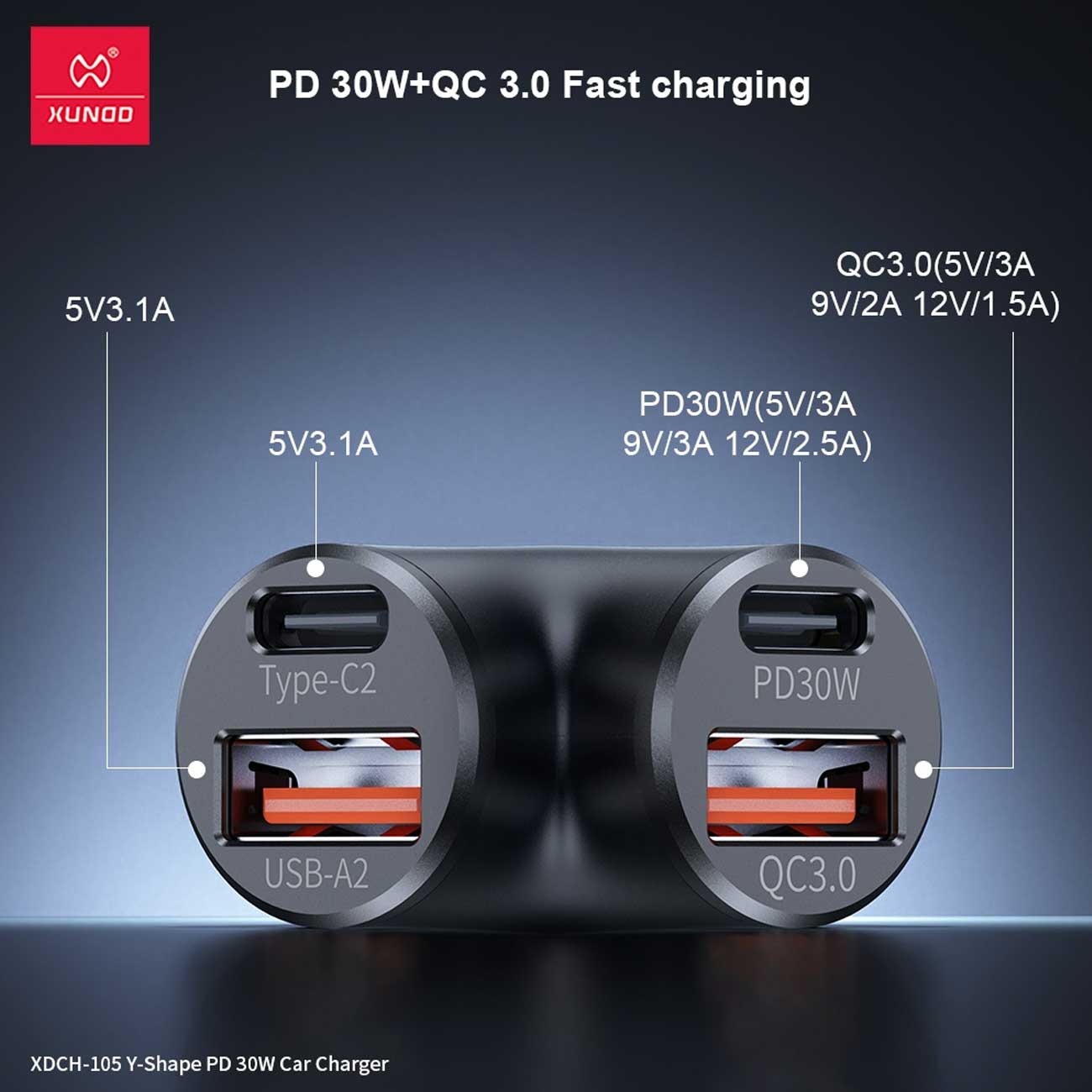 Xundd XDCH-105 Y-Shape PD 30W Car Charger