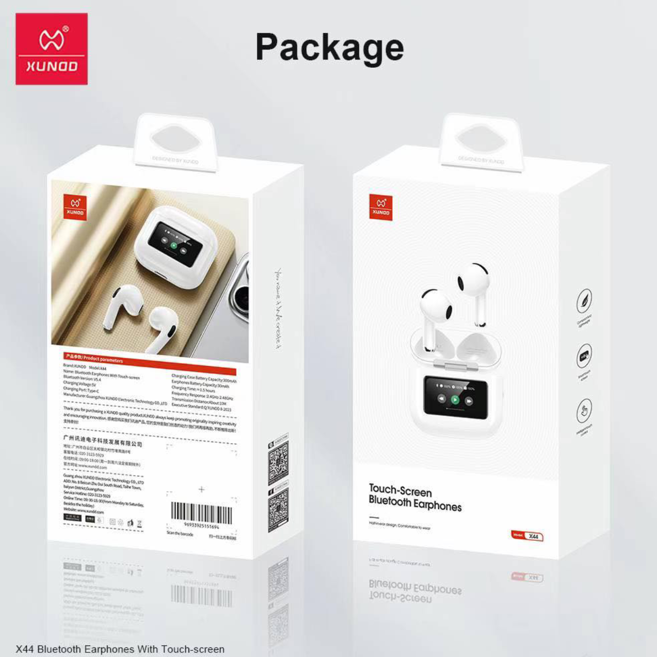 XUNDD X44 Touch-Screen Bluetooth Earphones
