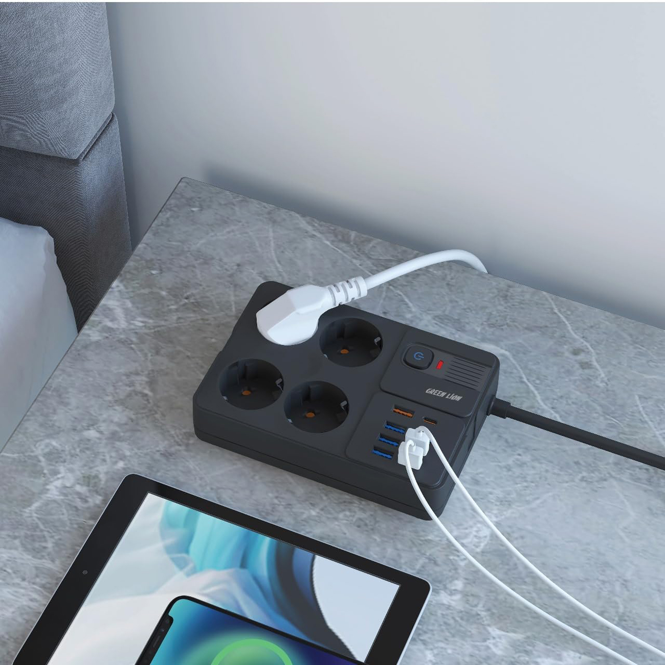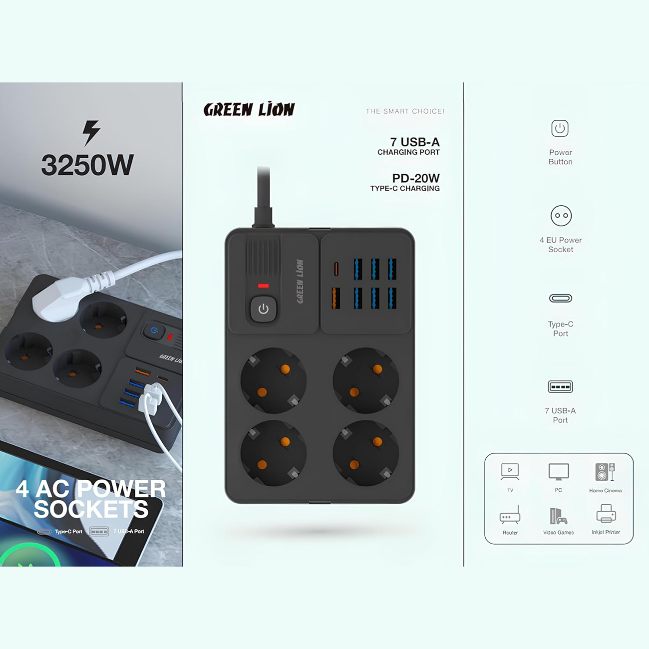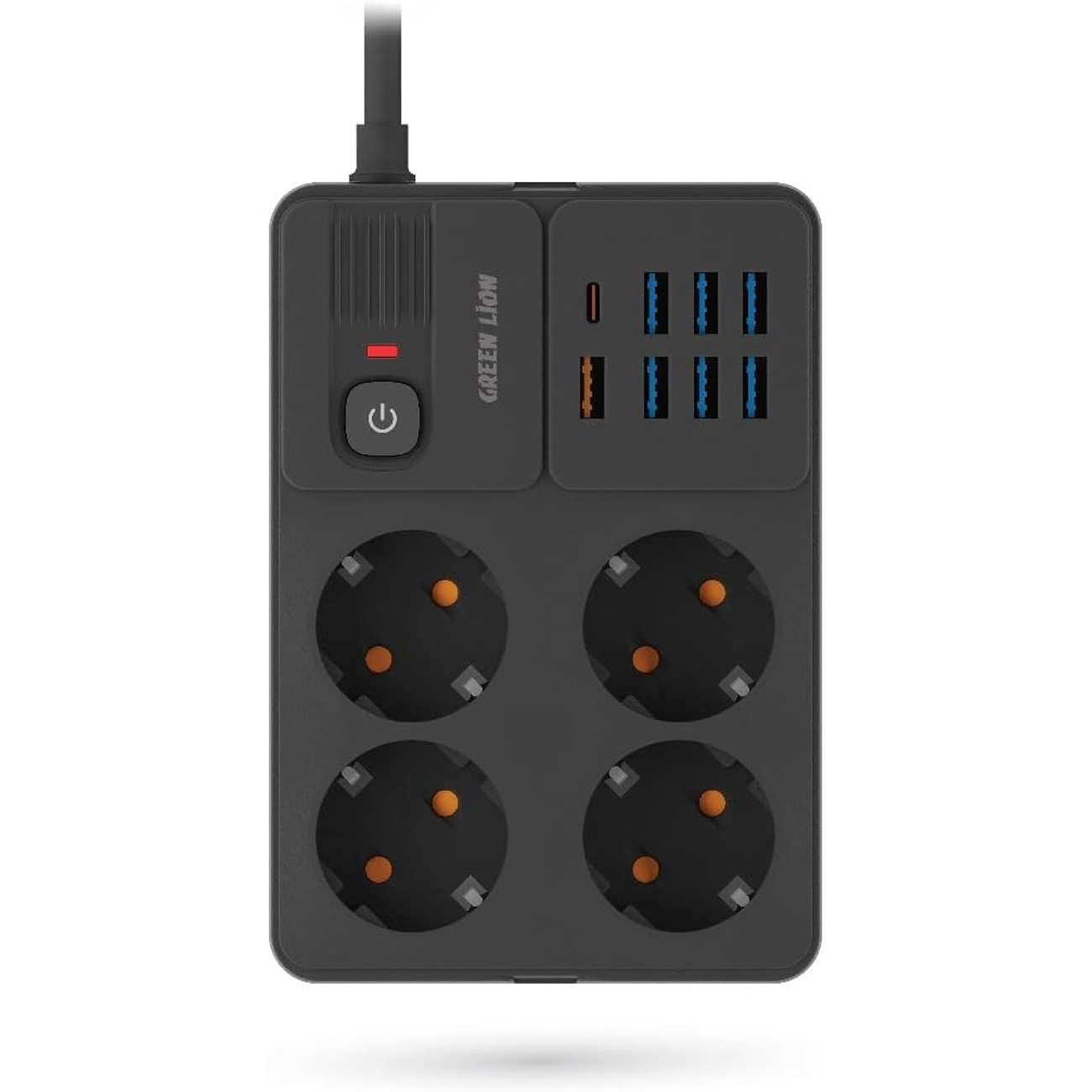 چندراهی برق 4 سوکت، 7 یواسبی و یک تایپسی گرین لاین GNPS7UPDEUBK
