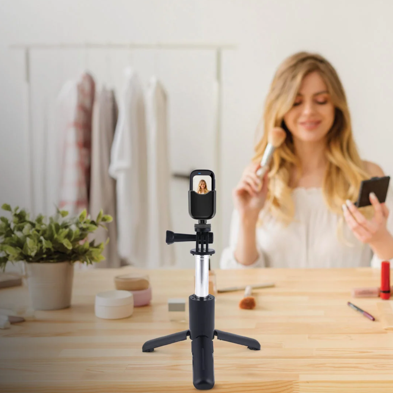 | اقلام همراه | سه پایه، ریموت کنترل، گردن بند سیلیکونی، کیف حمل پارچه ای، کابل شارژ و دو مدل Mount |