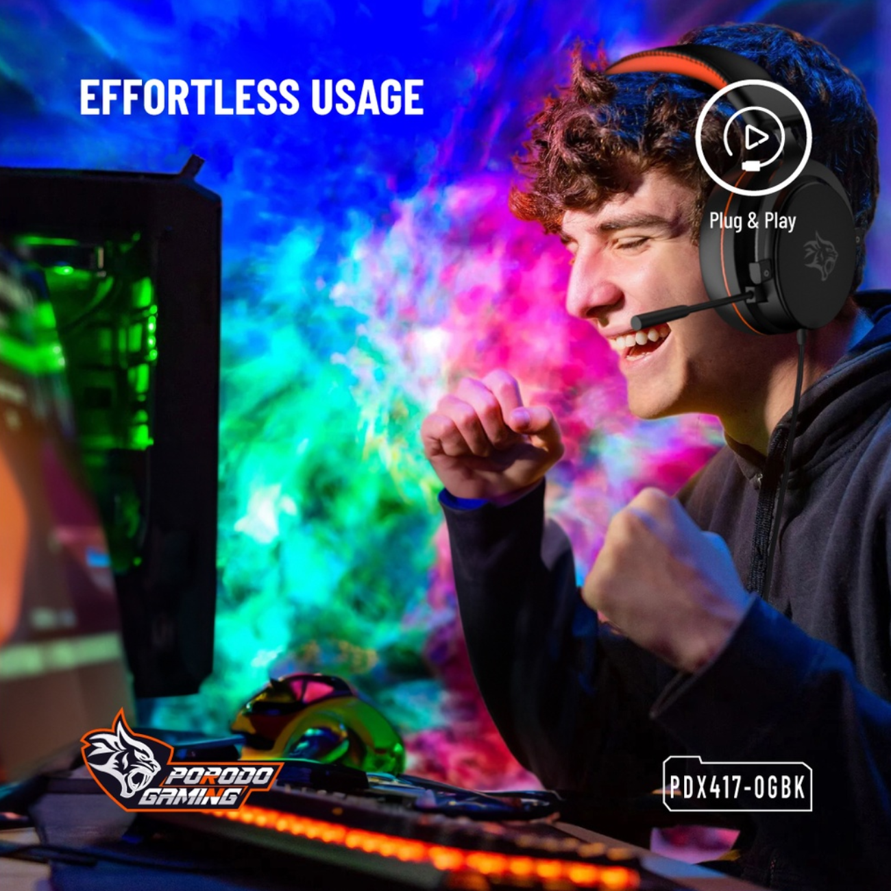 Porodo Gaming PC RGB ENC Gaming Headphones PDX417-OGBK