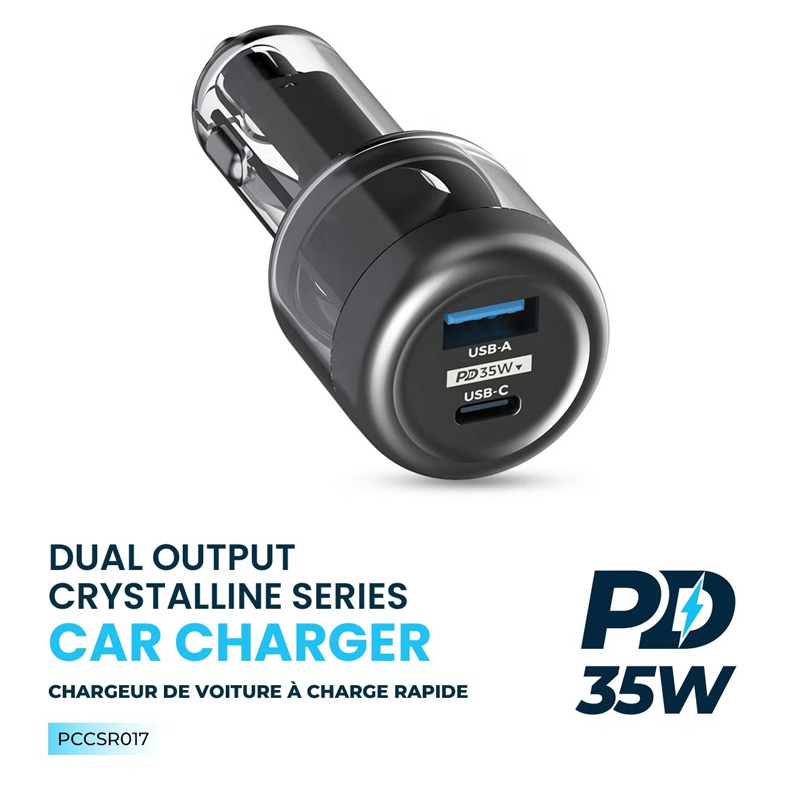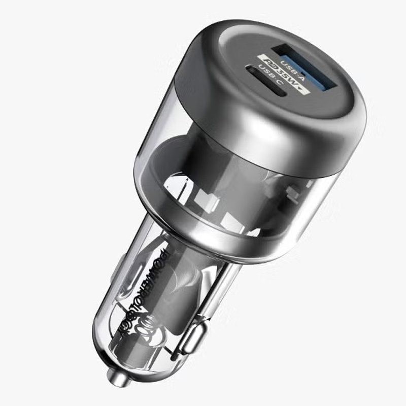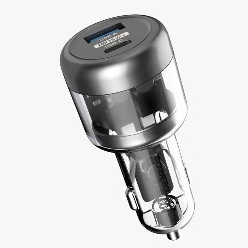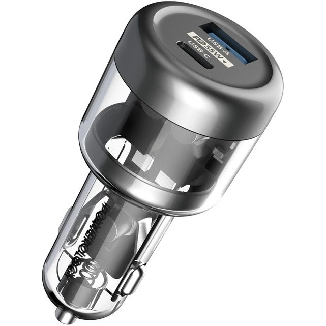 شارژر فندکی فست شارژ ماشین تایپ سی 35 وات طرح شفاف پاورولوژی PCCSR017