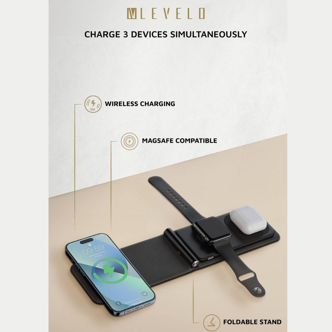 هولدر شارژر وایرلس 15 وات آیفون، ایرپاد، اپل واچ تاشو لِوِلو LV31WSS