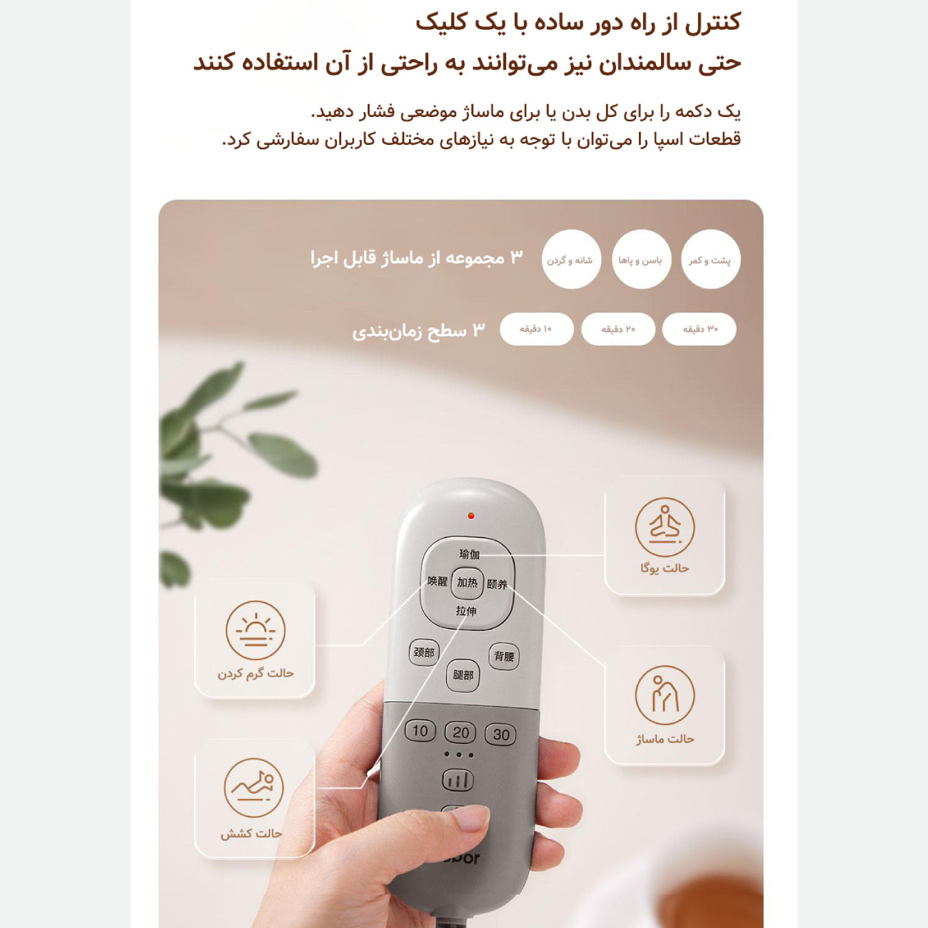| حالتهای ماساژ | 4 حالت هوشمند: گرم کردن، کششی، یوگا و اصلاحی |