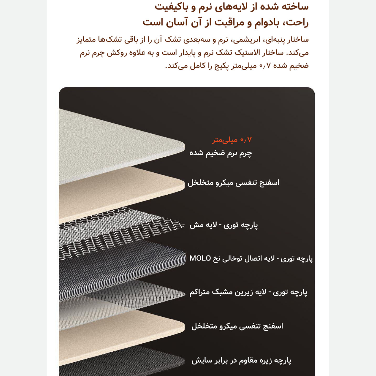| جنس مواد | روکش چرم نرم (0.7 میلیمتر)، اسفنج تنفسی و پارچه توری |