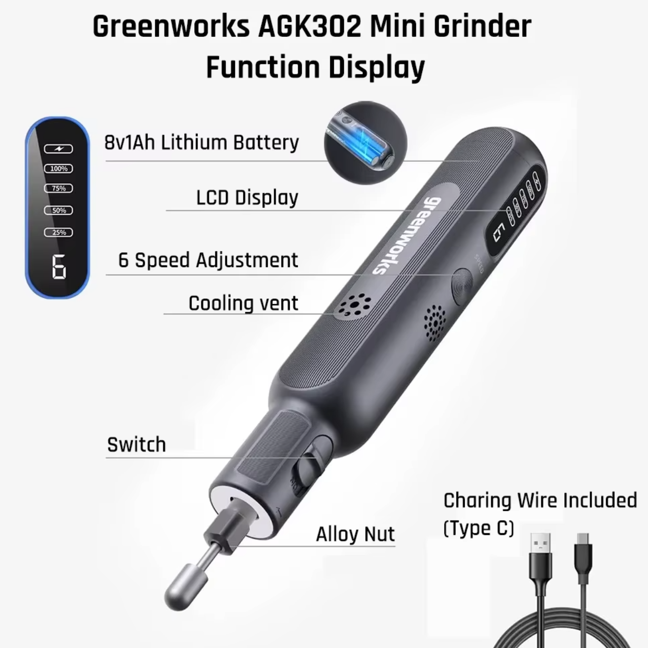 Greenworks Multifunctional Electric Grinder Set Rechargeable AGK302
