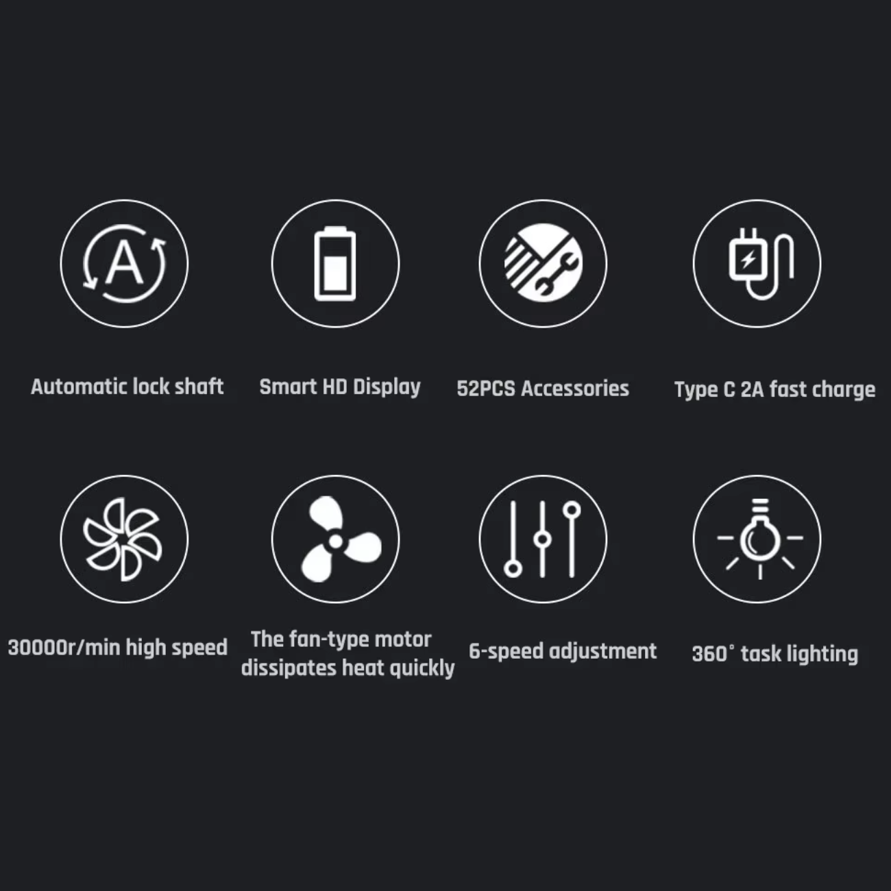 | سرعت قابل تنظیم | 6 سطح (5000 تا 30000 دور در دقیقه) |
