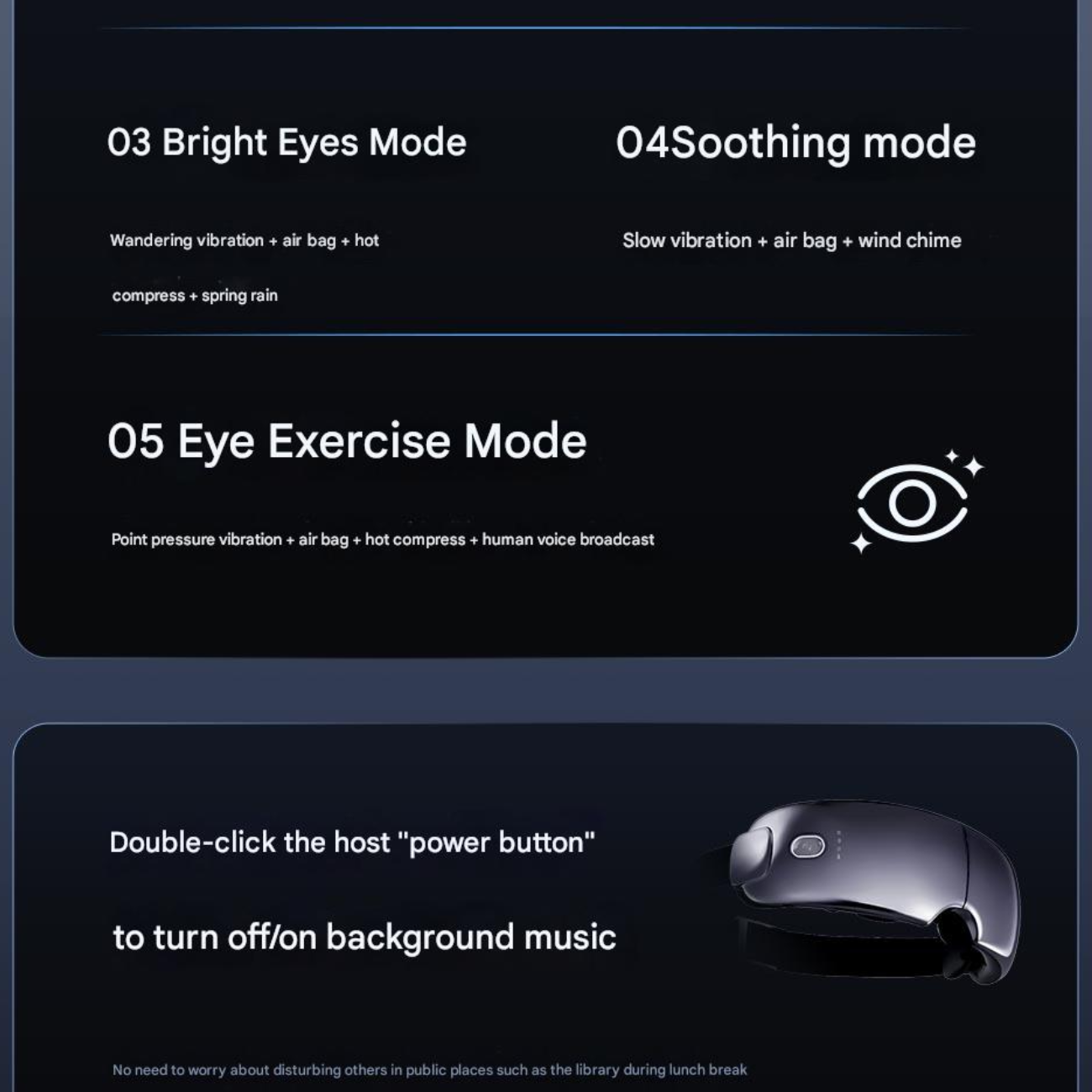 | حالتهای ماساژ | 4 حالت مختلف (حالت انرژی، آرامش، خواب، تمرکز) |