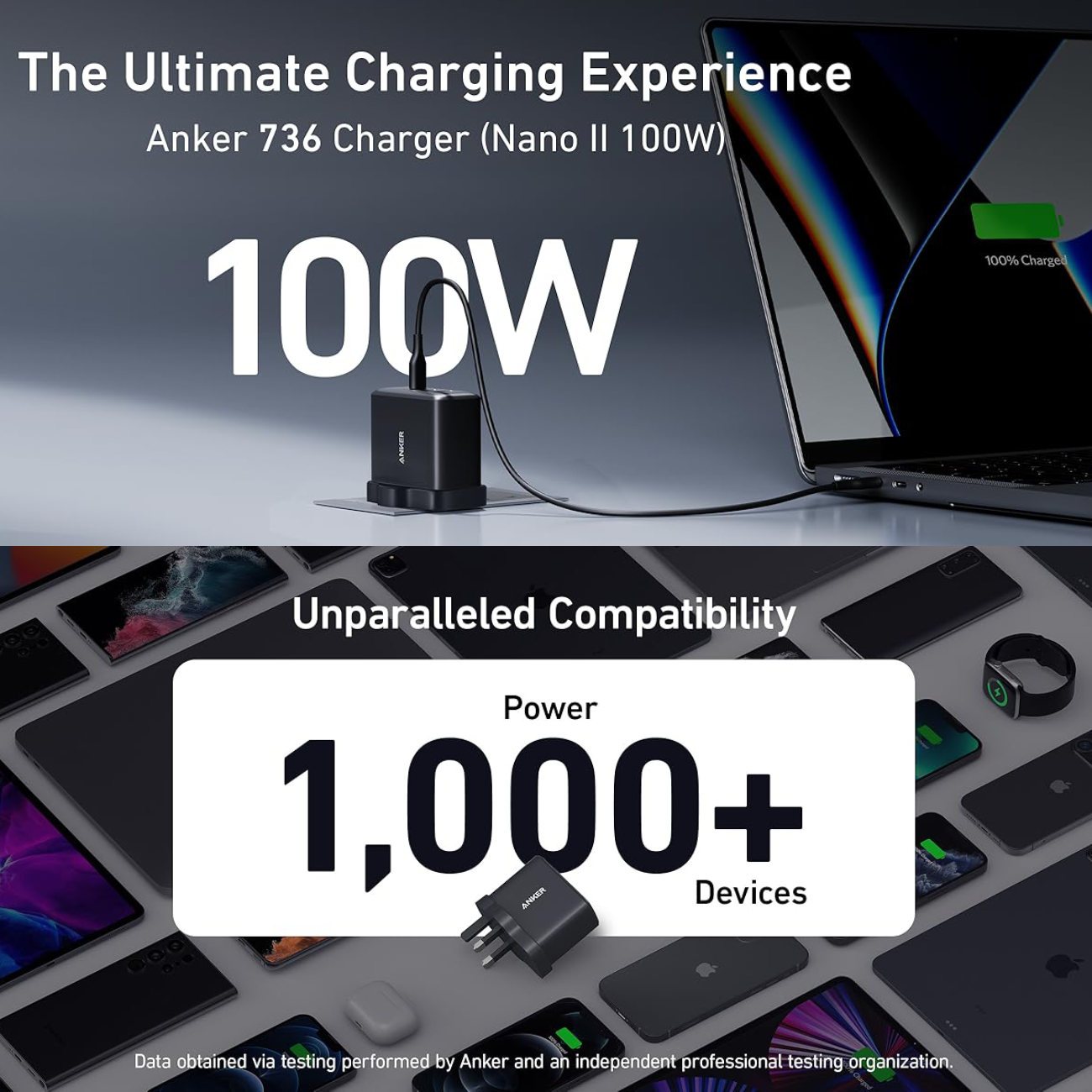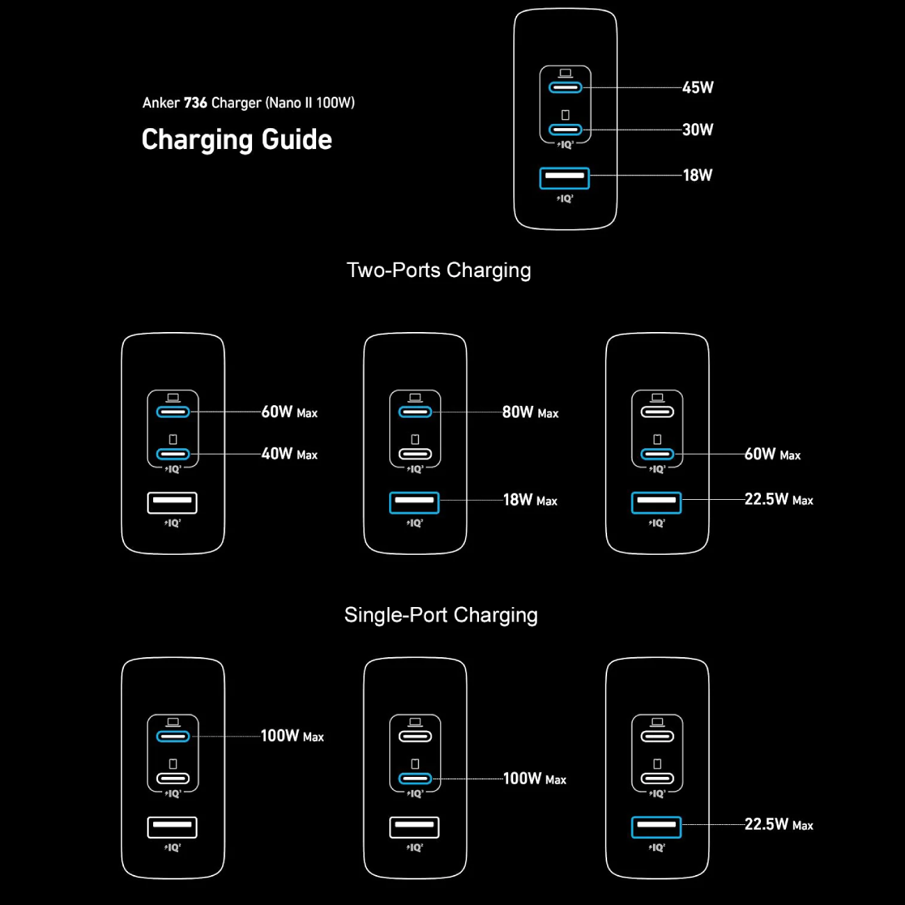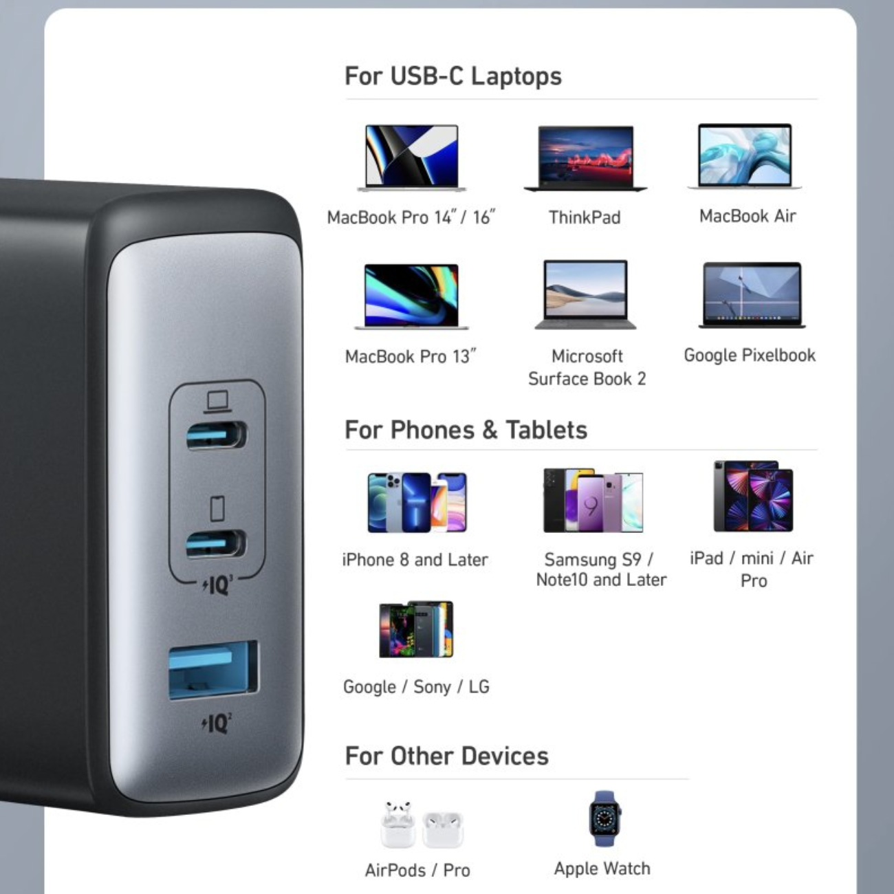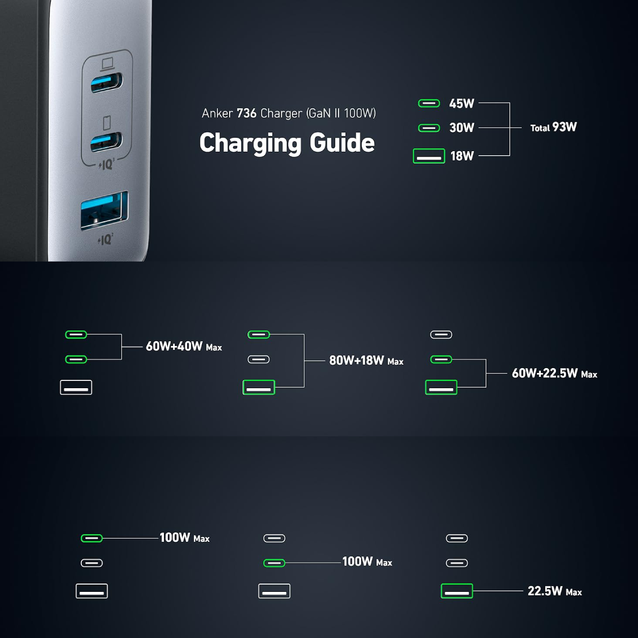 Anker 736 Charger GaN II 100W 3-Port Fast Compact Wall Charger A2145K11