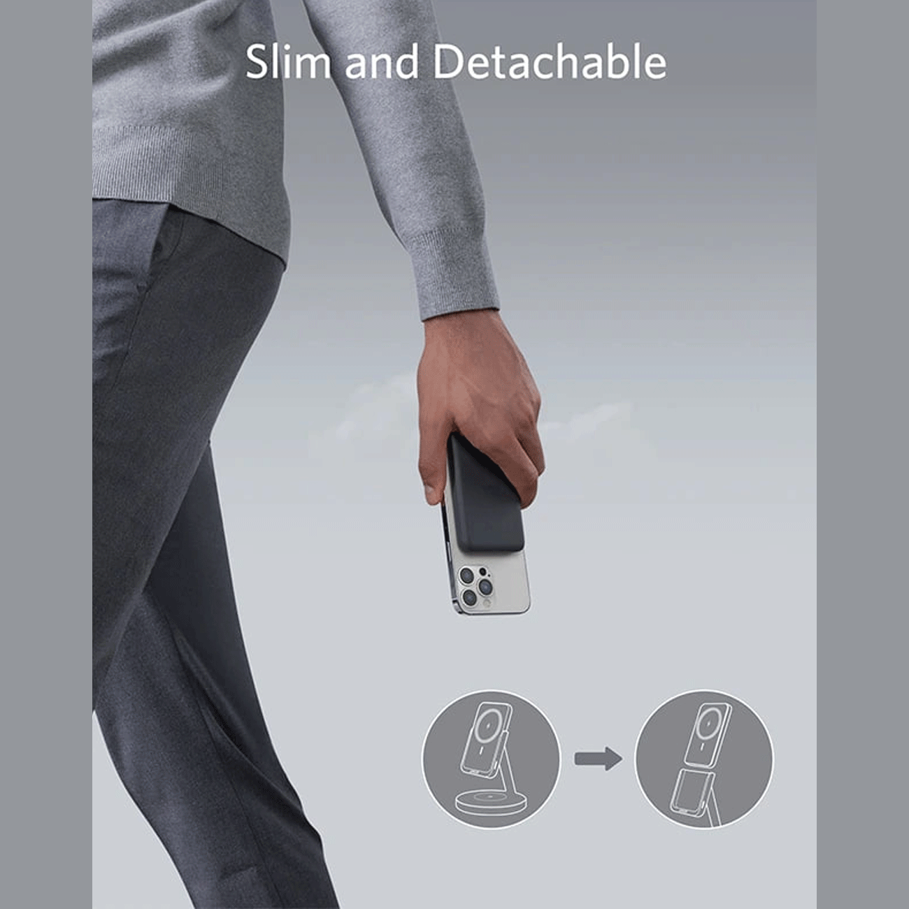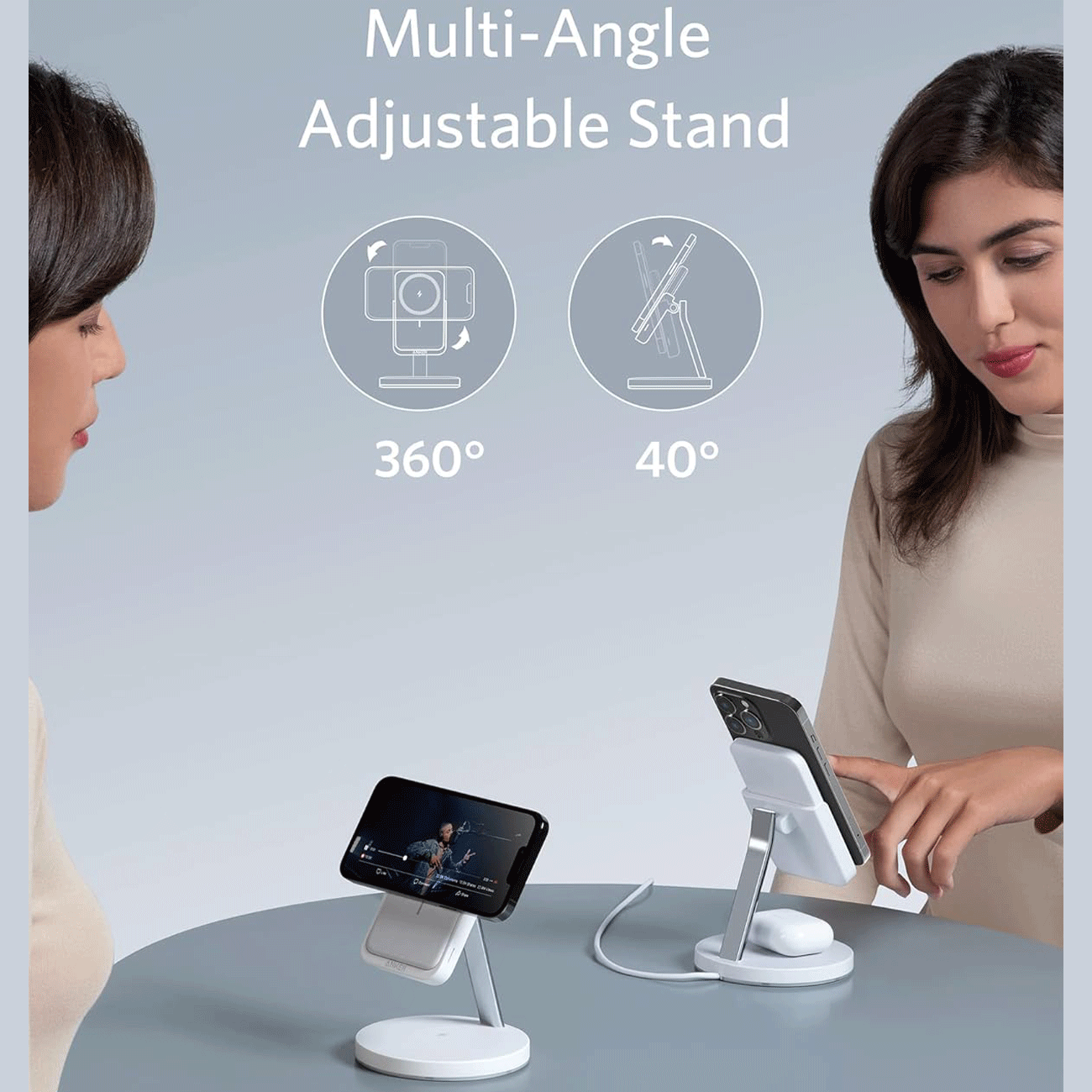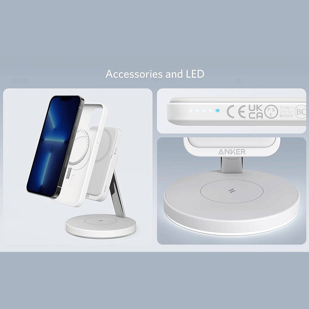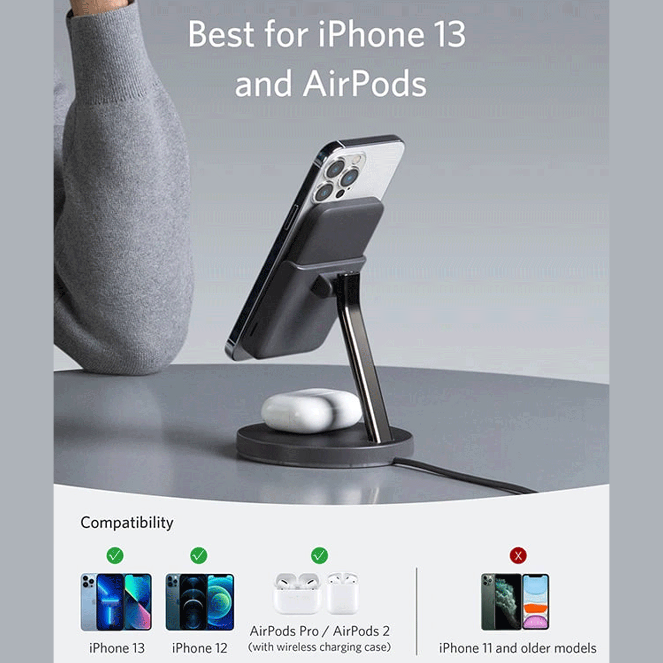 پاوربانک وایرلس 5000 گوشی آیفون 12،13، ایرپاد پرو و ایرپاد 2 و هولدر موبایل رومیزی انکر B25A7221