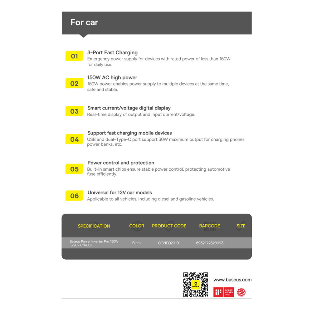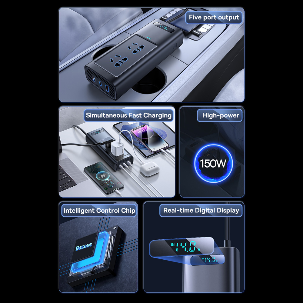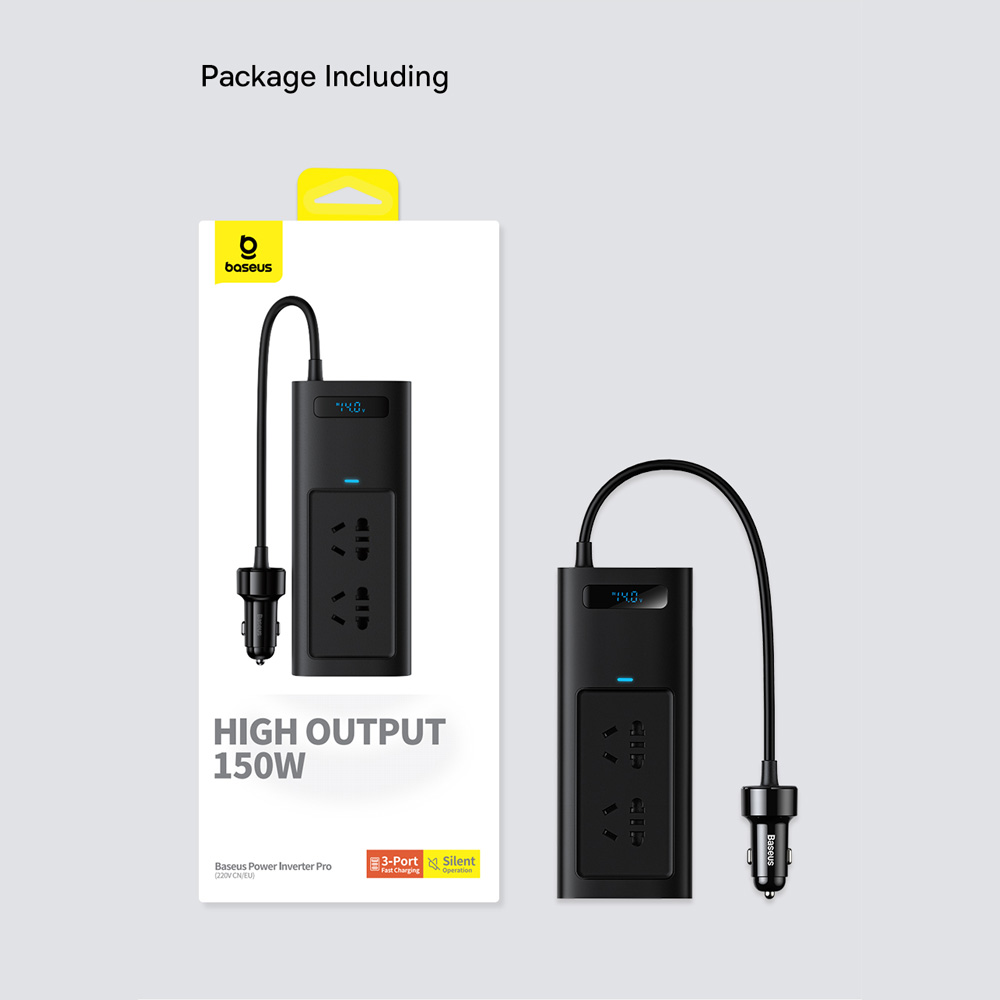 Baseus 150W Car Inverter Pro DC 12V to AC 220V 110V Auto Power Inversor USB Type C Fast Charger For Car Power Adapter