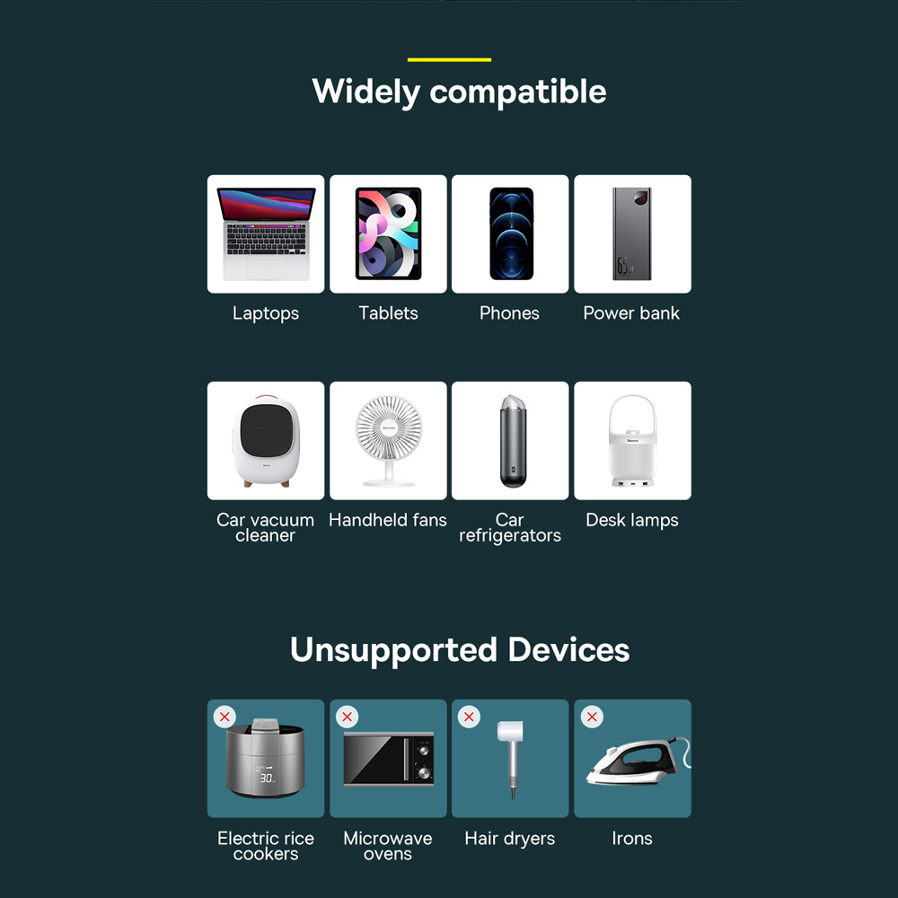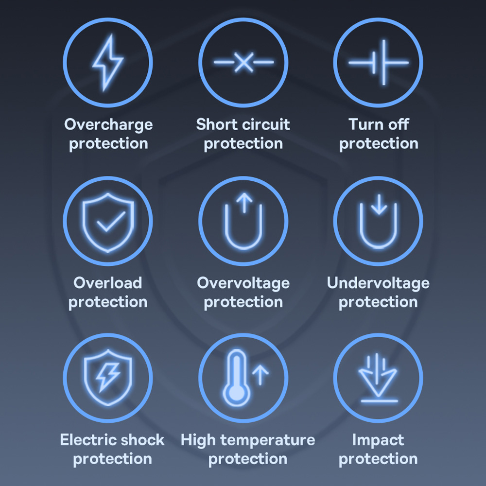 | ولتاژ خروجی | USB Output 4.5V/5A,5V/4.5A,5V/3A,9V/3A,12V/2.5A Max,4.5V/5A 5V/4.5A 5V/3A 9V/3A 12V/2.5A Max,Type-C Output 5V/3A,9V/3A,12V/2.5A Max,AC Output voltage(CN/EU) AC 220V-240V ~50Hz 150W Max. (corrective wave ) |