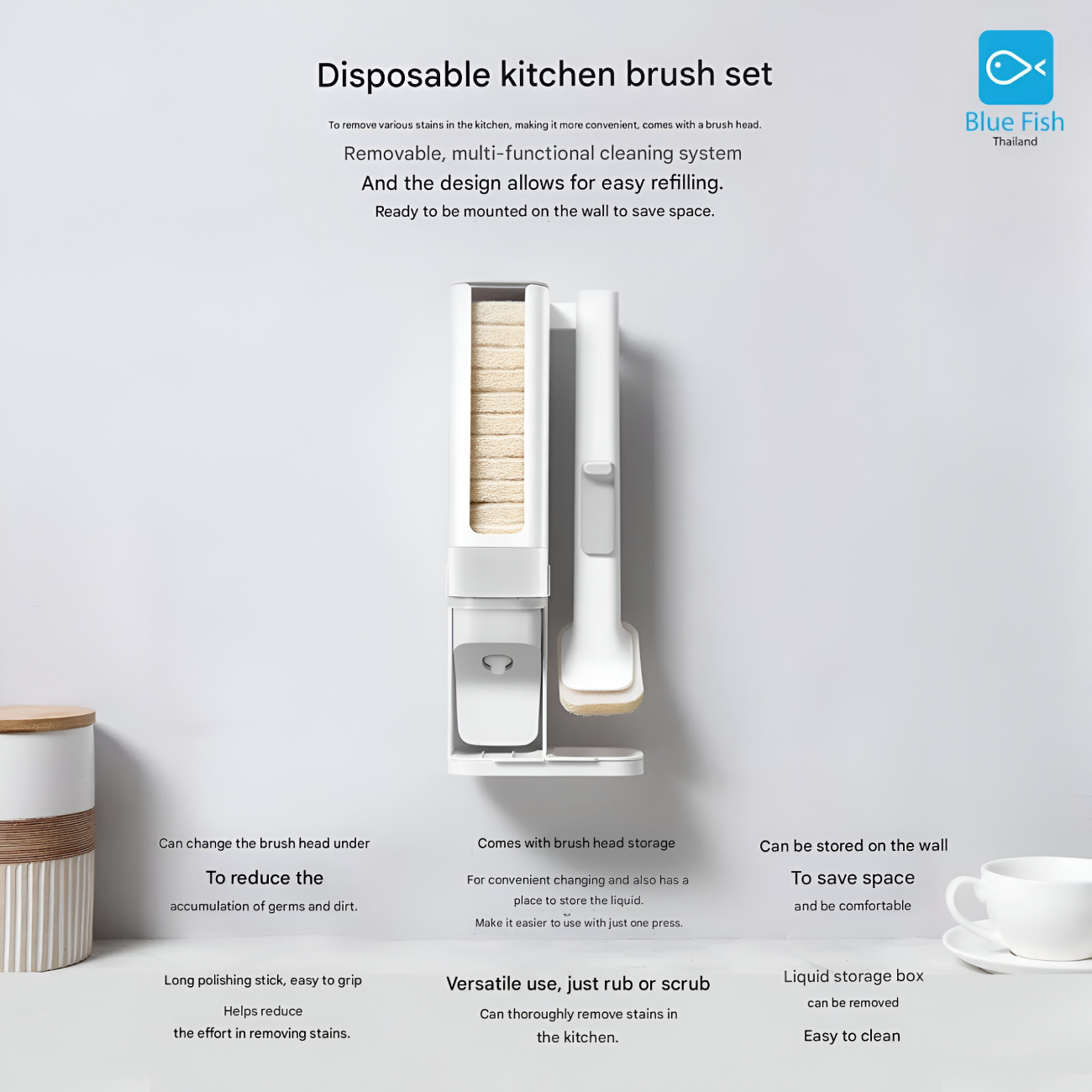 برس ظرفشویی با جای مایع دیواری بلوفیش PB01