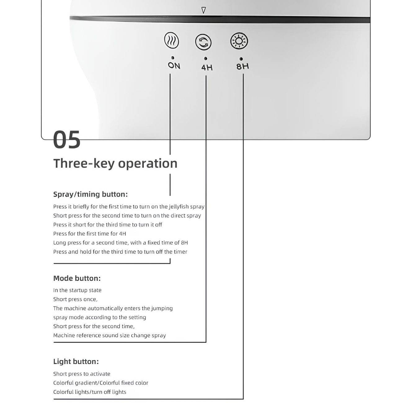 | حالتهای عملکرد | حالت چتری (Jellyfish Mode)، حالت اسپری مستقیم (Direct Spray) |