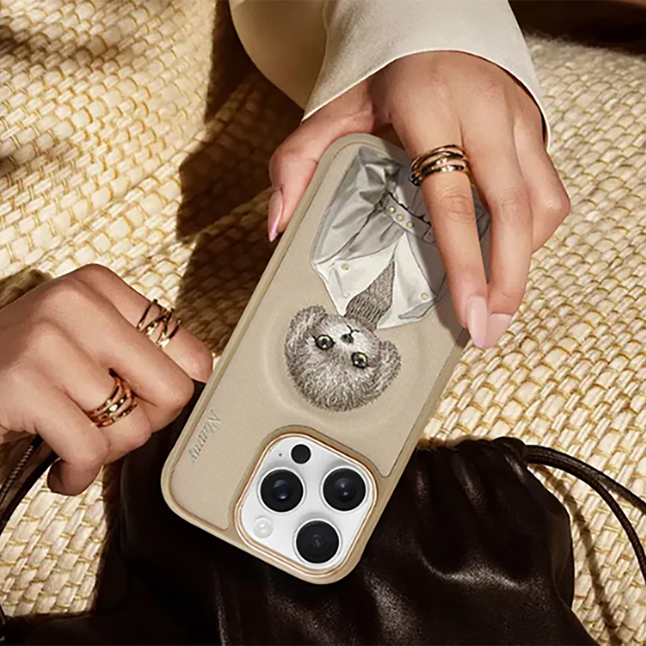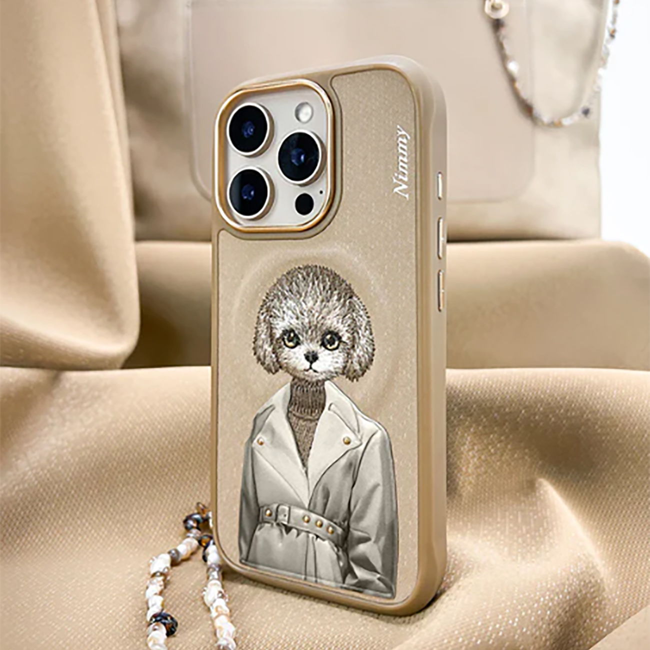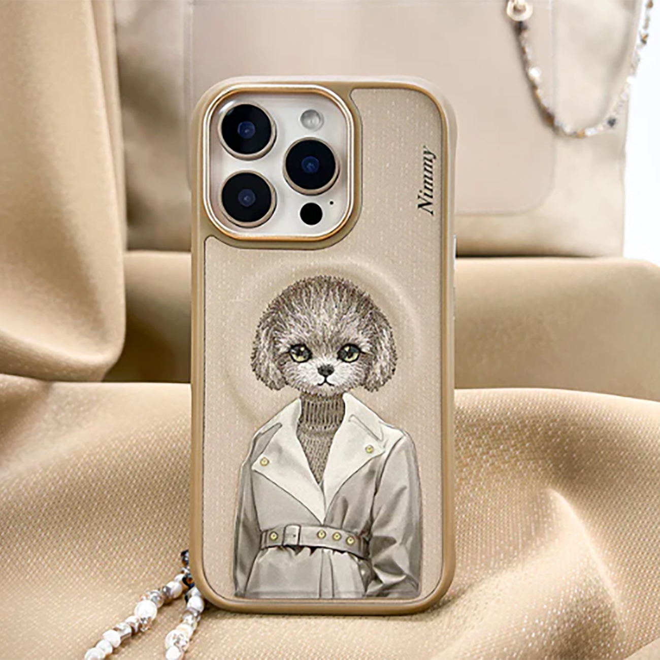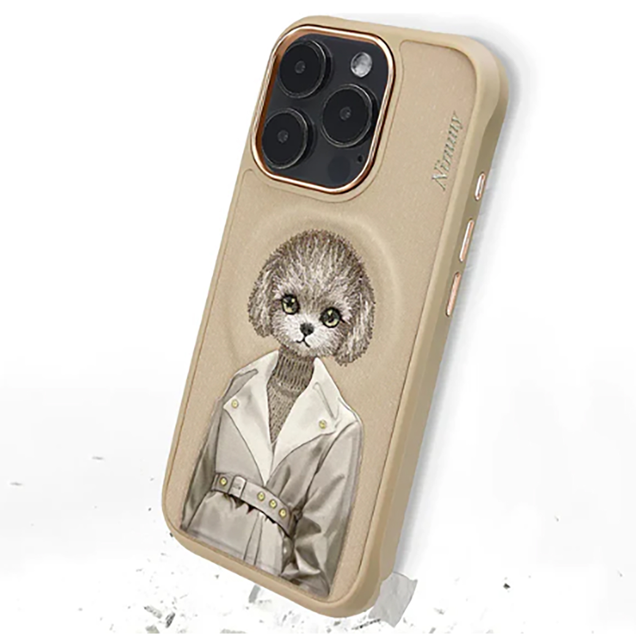 قاب مغناطیسی گوشی آیفون 16 پرومکس طرح سگ گلدوزی شده نیمی