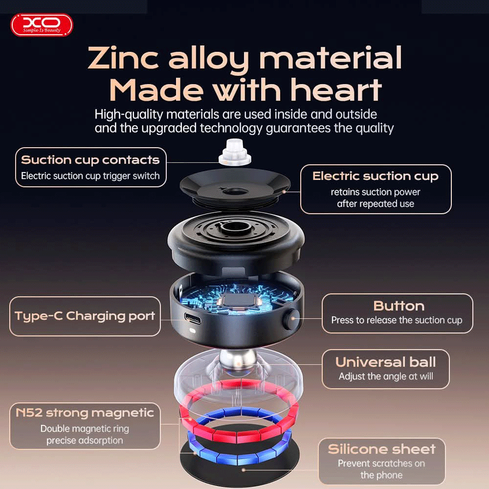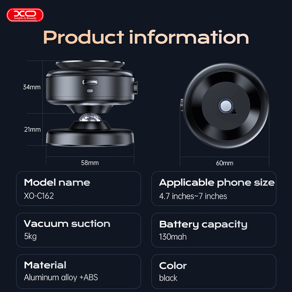 هولدر مکشی مگنتی الکتریکی چرخشی 360 درجه قابل شارژ داخل خودرو ایکس او C162