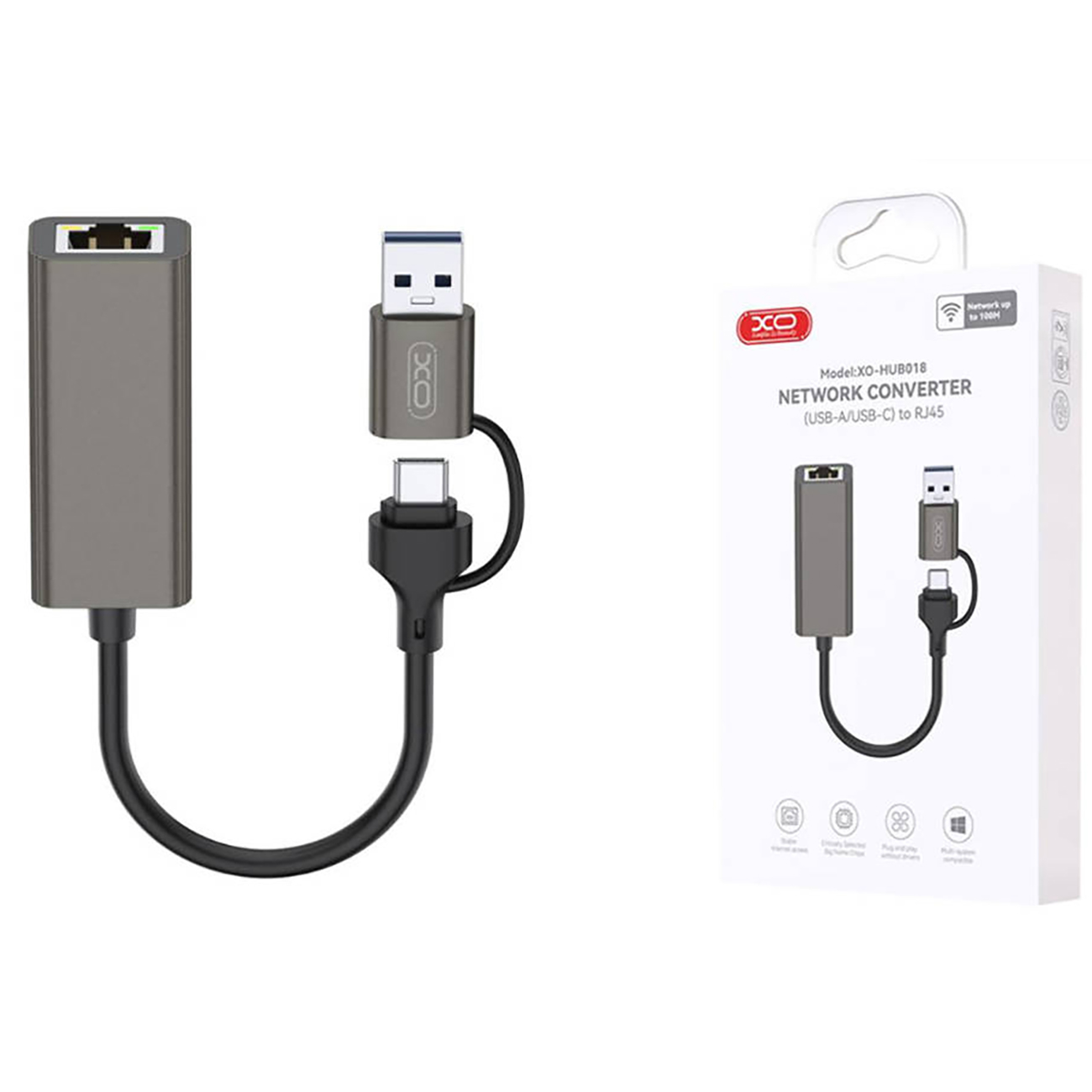 XO HUB018 NETWORK CONVERTER (USB-A/USB-C) to RJ45