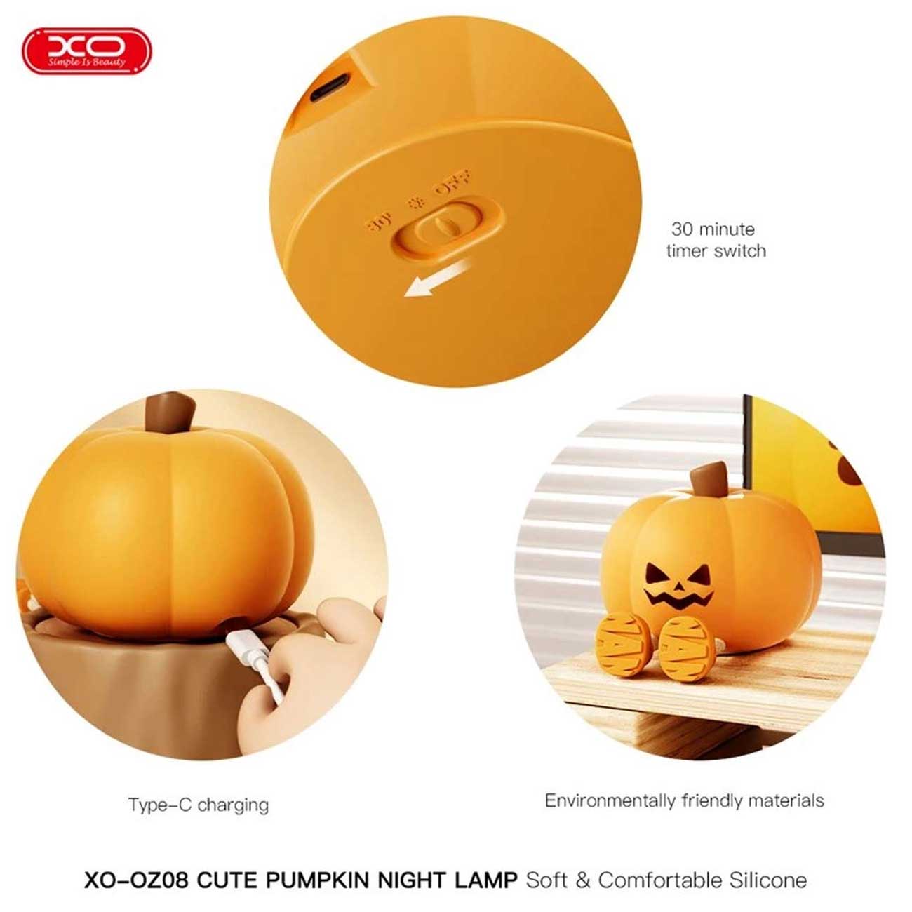 چراغ خواب فانتزی رومیزی شارژی طرح کدو تنبل ایکساو OZ08