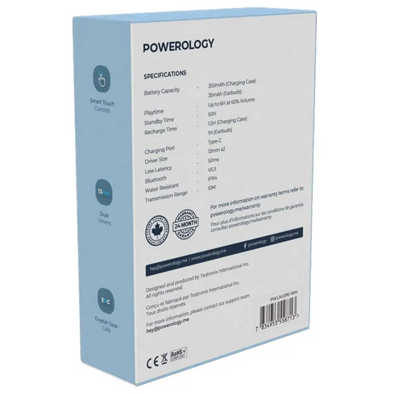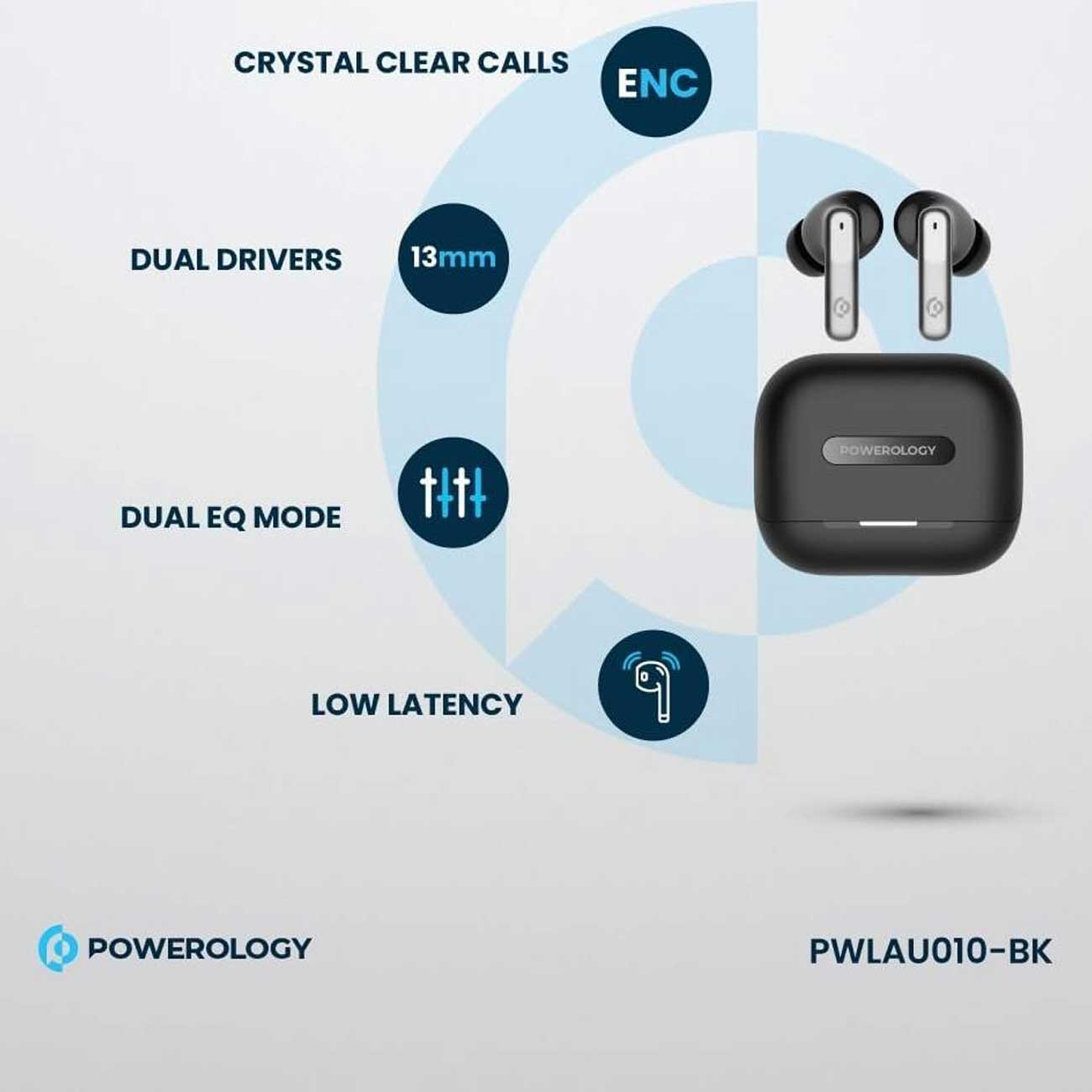 Powerology 6 Mic Hybrid ANC + ENC True Wireless Buds
