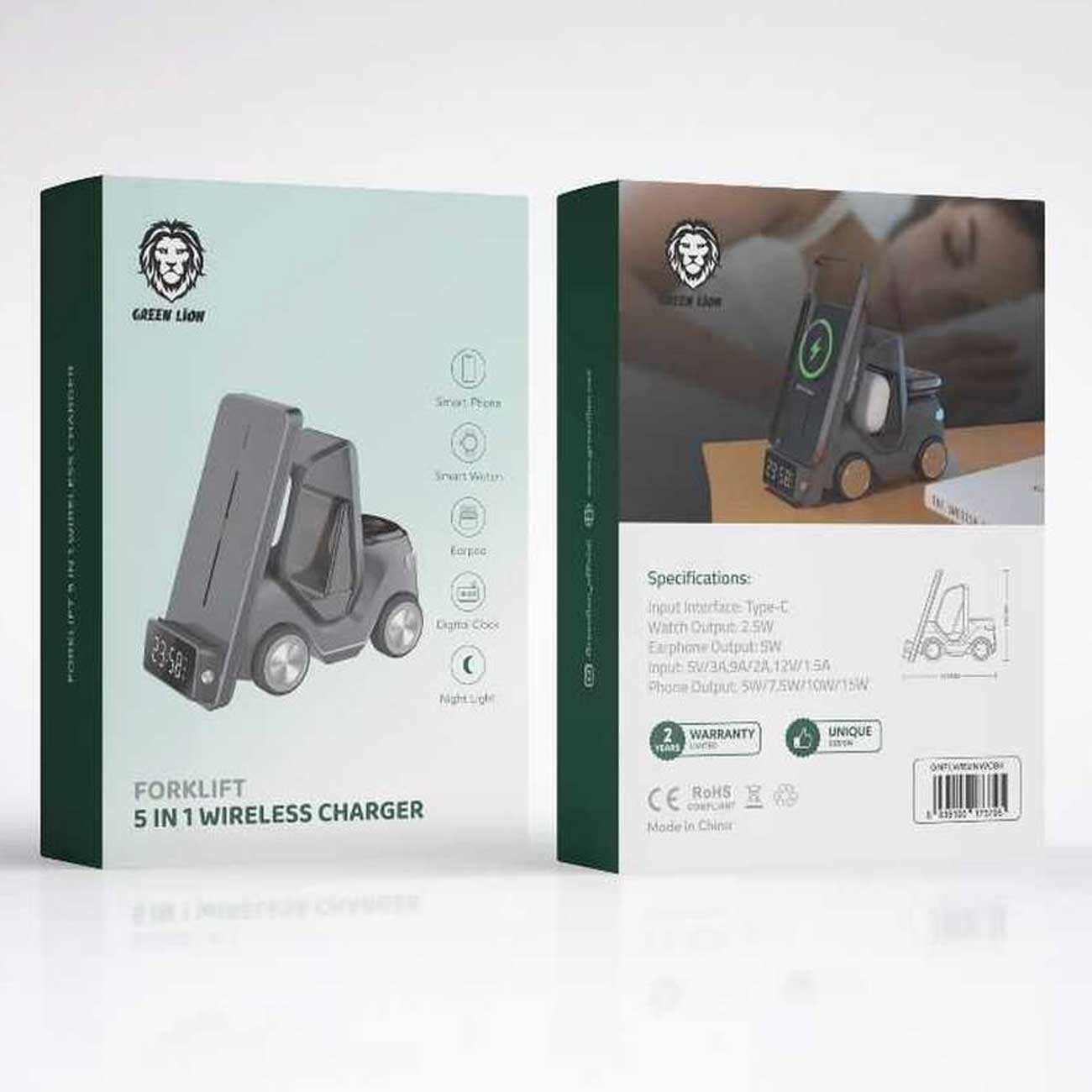 Green Lion Forklift 5 in 1 Wireless Charger Stand GNFLWR5INWCBK