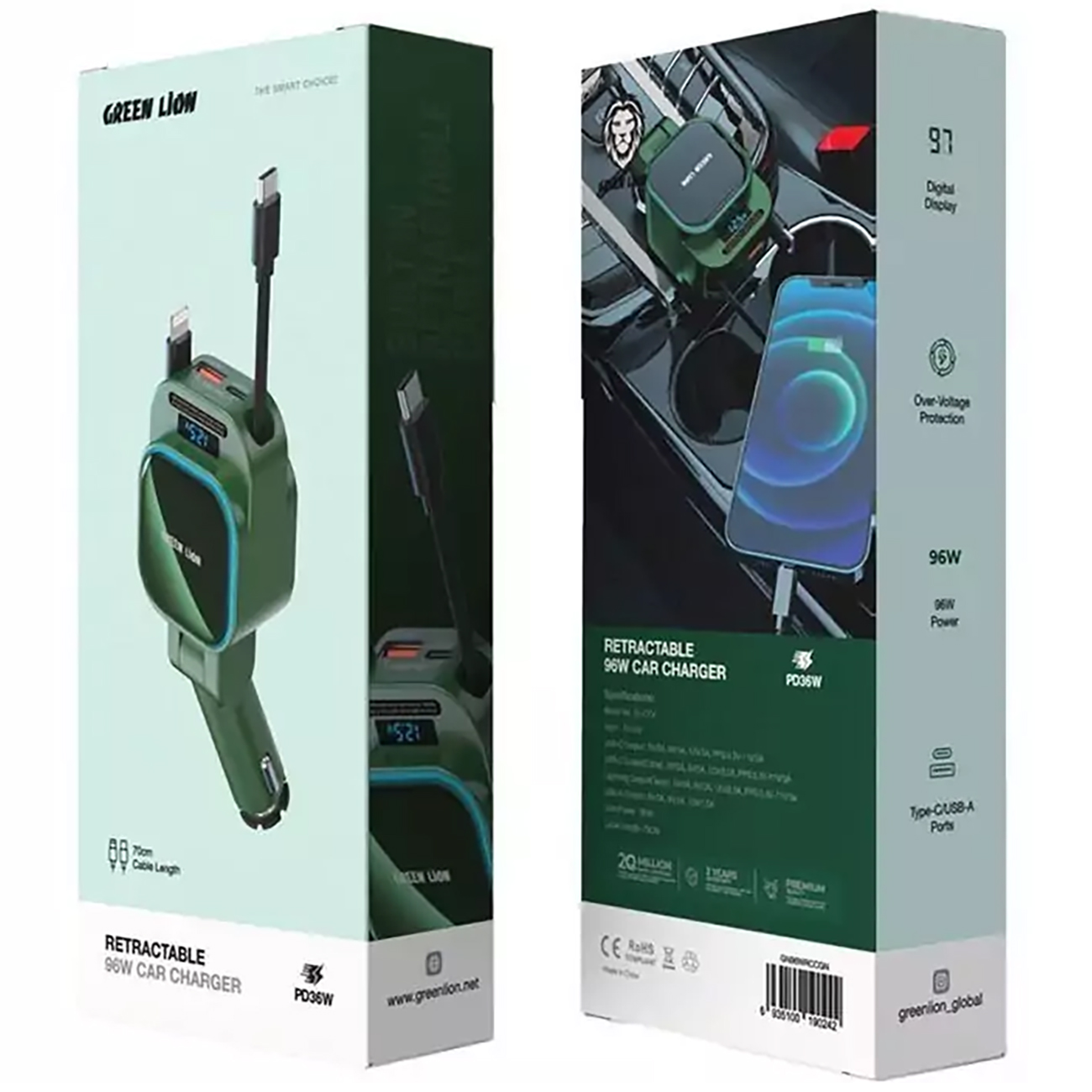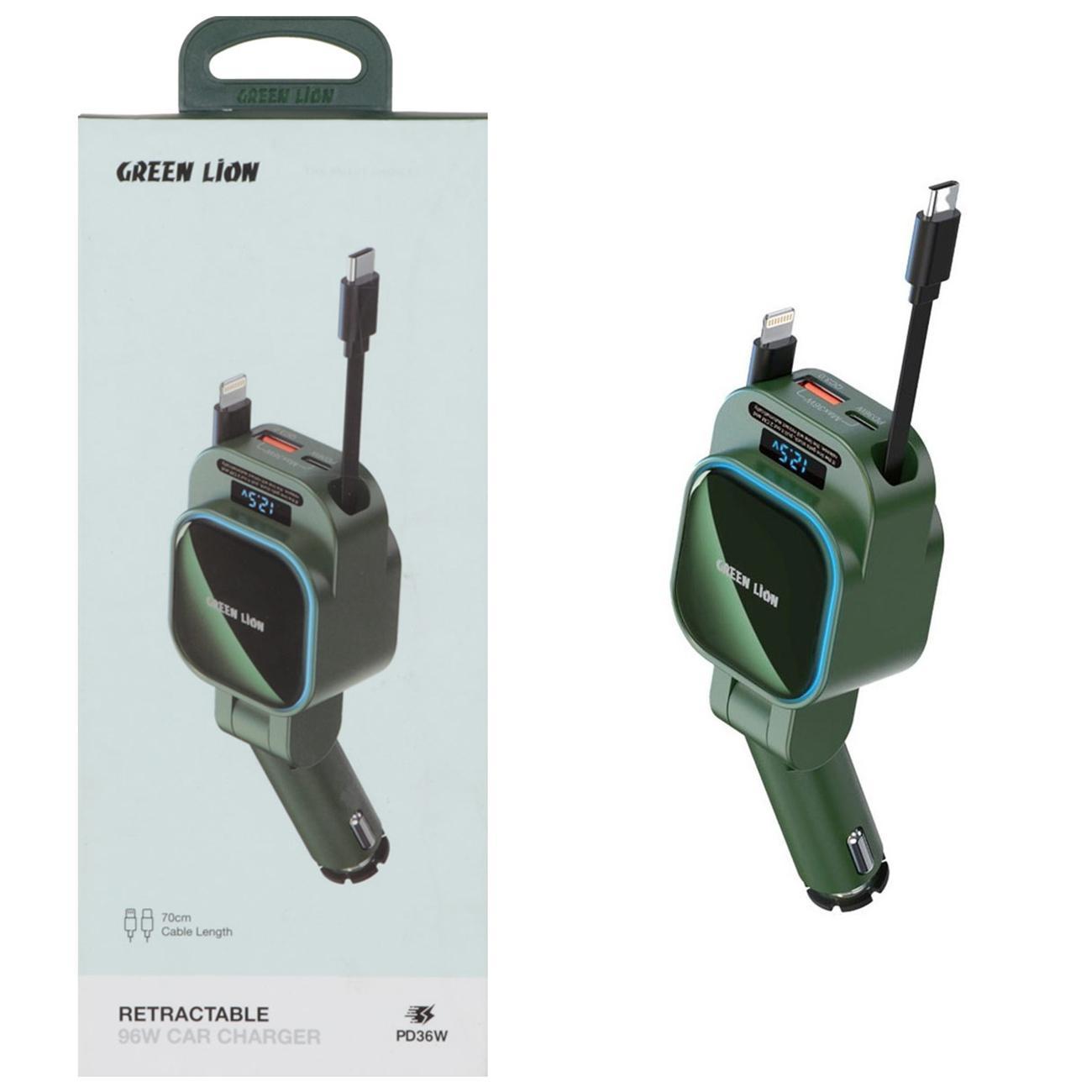 Green Lion GN96WRCCGN Retractable 96W Car Charger