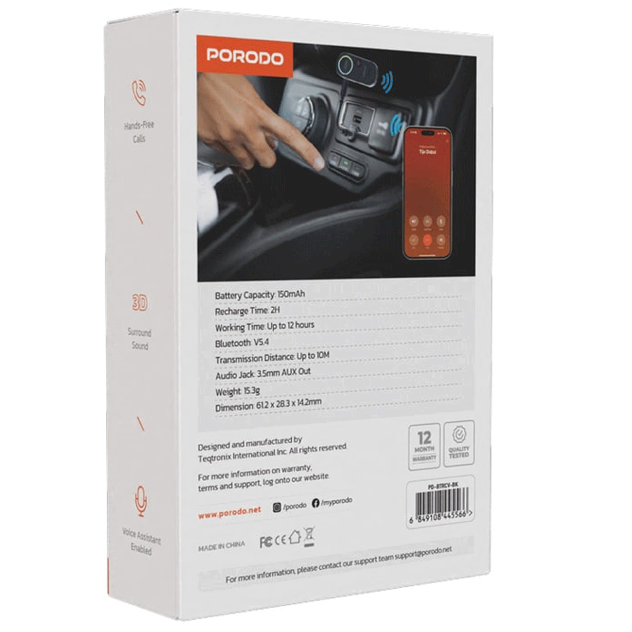Porodo PD-BTRCV-BK Wired to Wireless BT Audio Transmitter