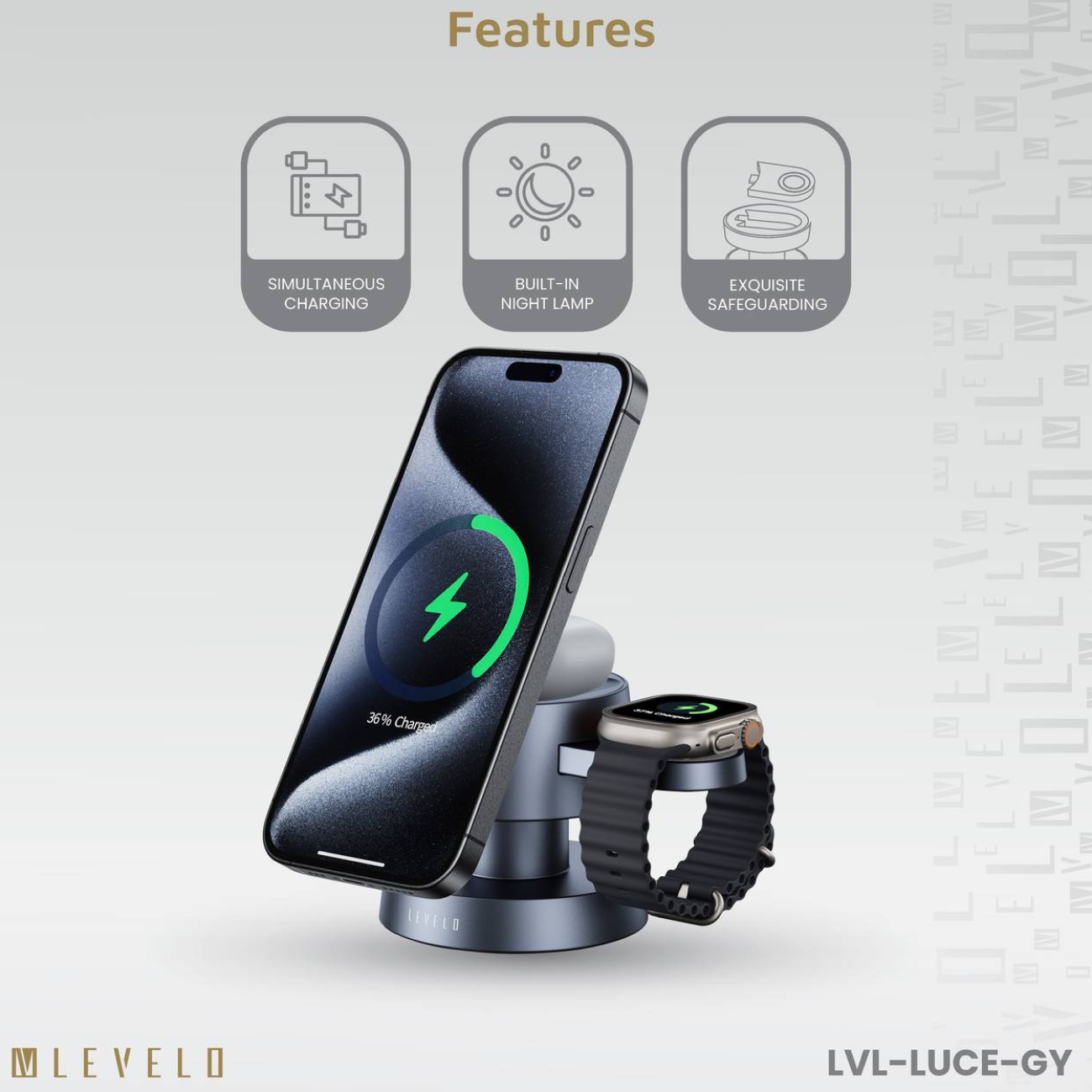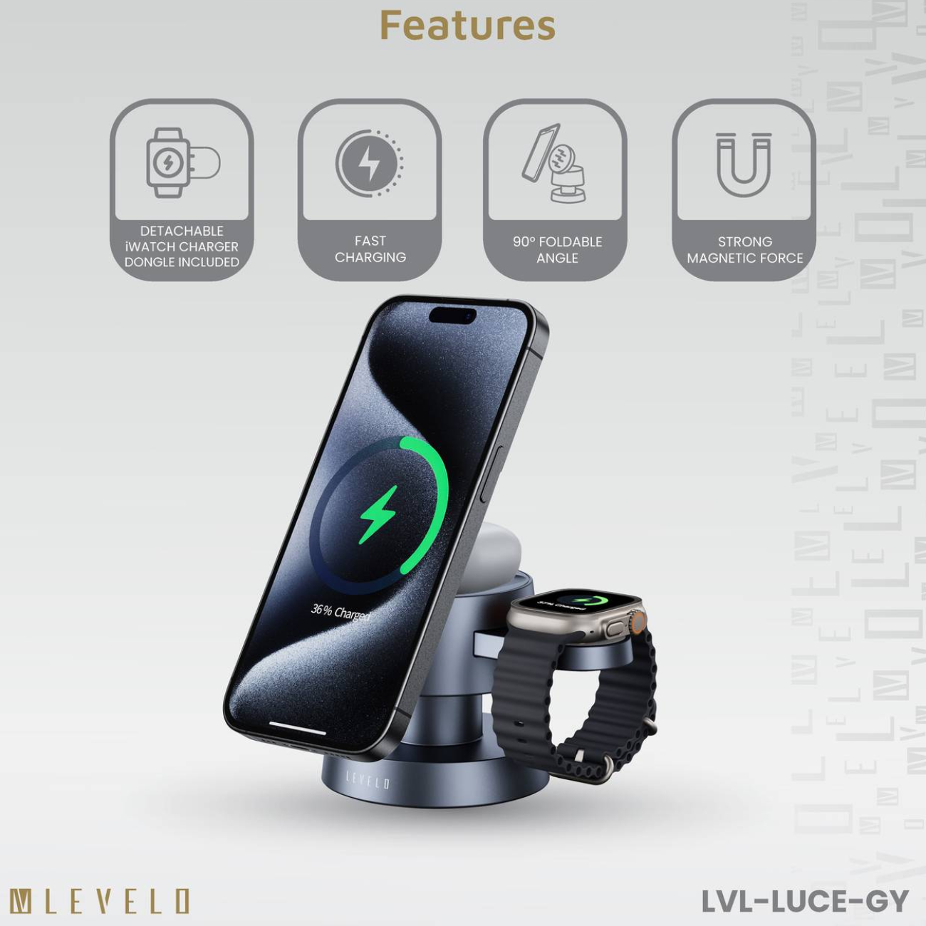 Levelo Luce 4 In 1 Wireless Charger LVL-LUCE-GY