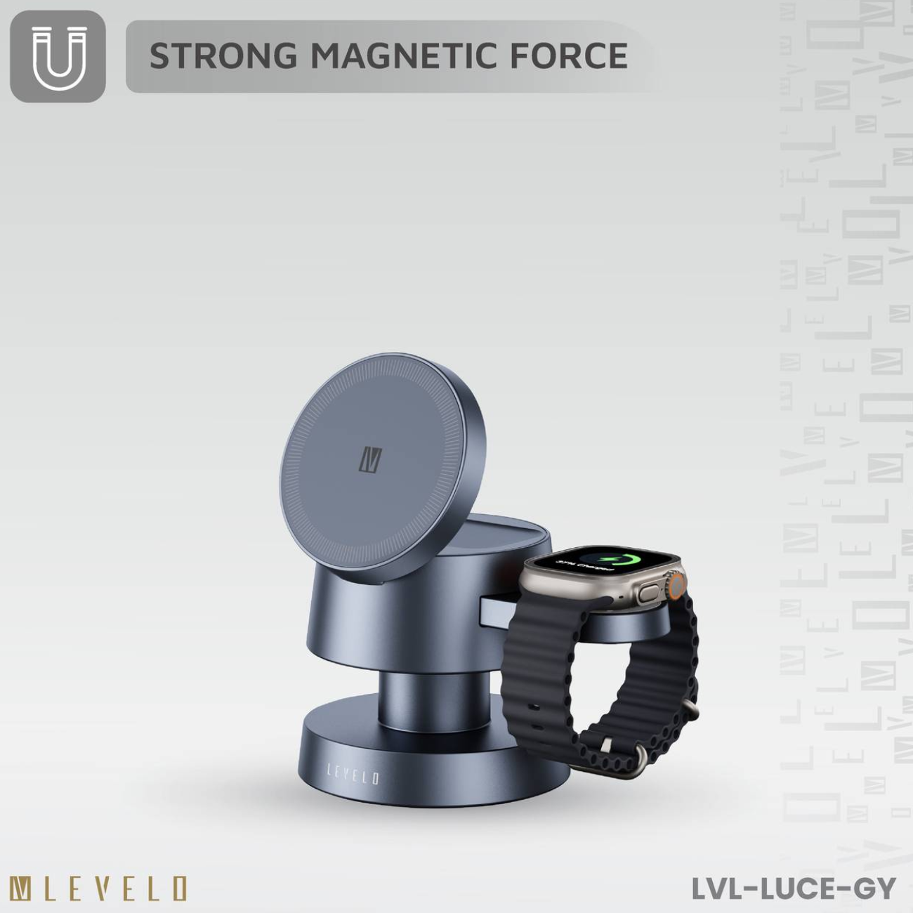 شارژر بی سیم مگنتی، چراغ خواب و پایه نگهدارنده رومیزی گوشی، ایرپاد و اپل واچ لِوِلو LVL-LUCE-GY