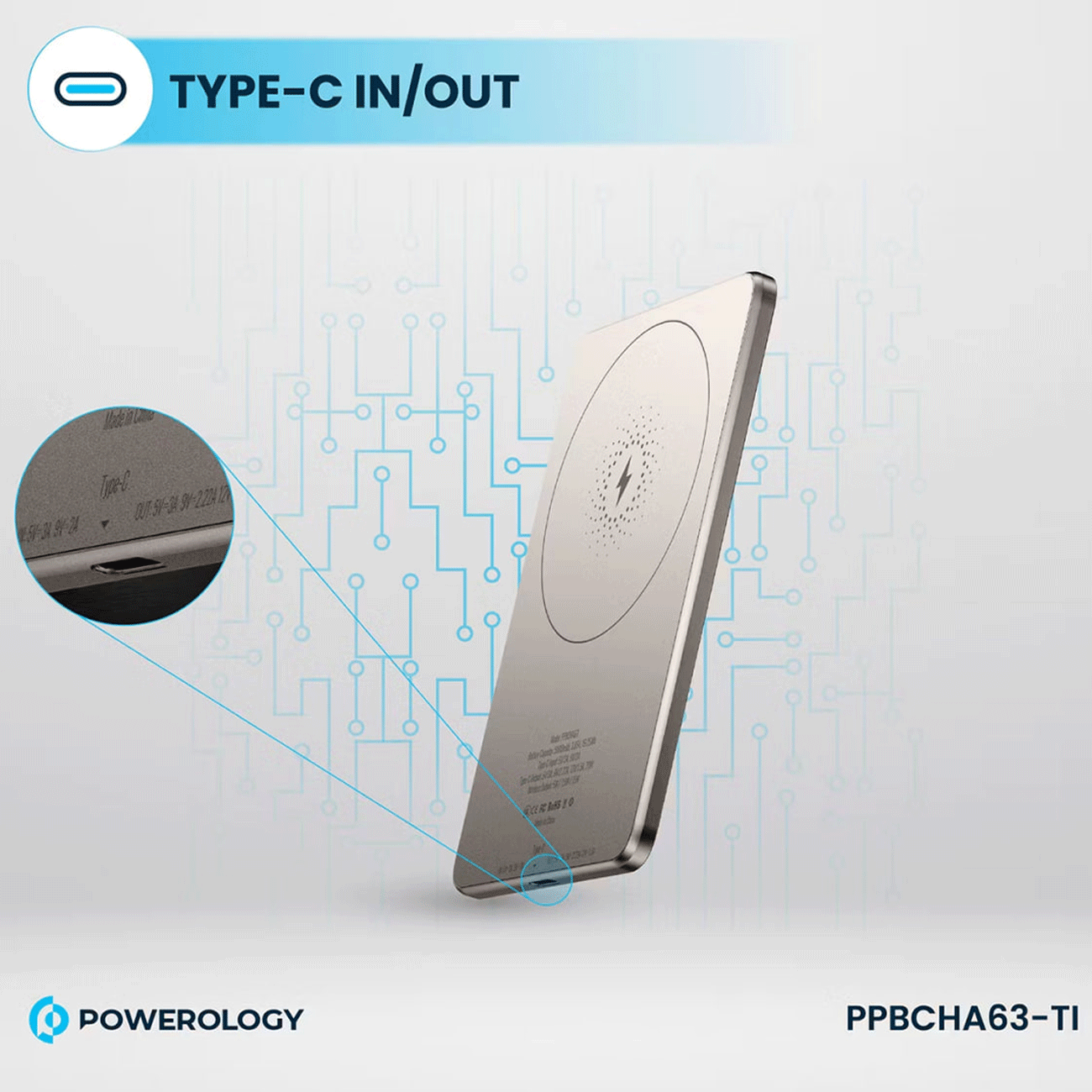 Powerology PPBCHA63 Ultra-Thin 5000mAh MagSafe Power Bank