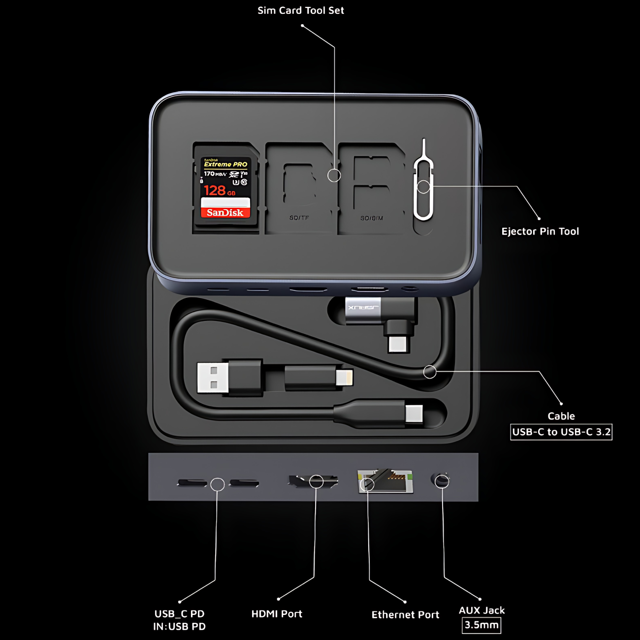 هاب تایپ سی 10 پورت، محفظه نگهداری مموری و سیم کارت لِوِلو LVL10IN1DS