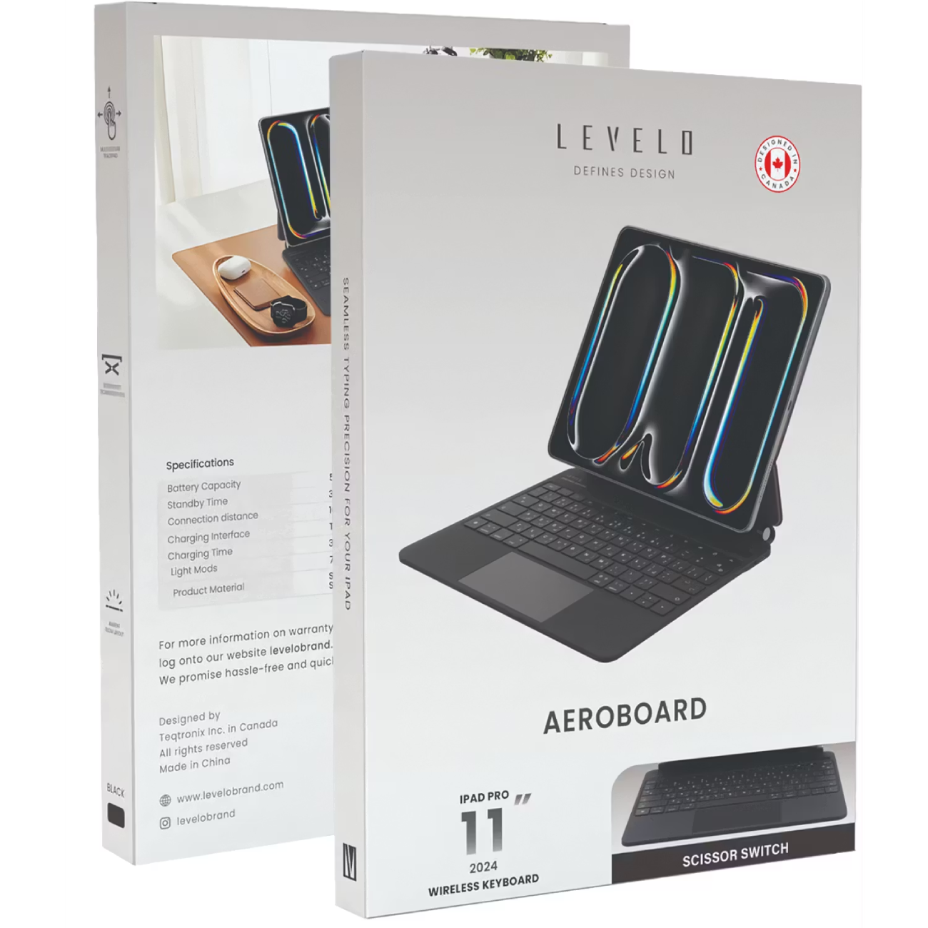 Levelo AeroBoard Saffiano Leather Wireless Keyboard iPad Pro 11" 2024 LVLABKP11BK