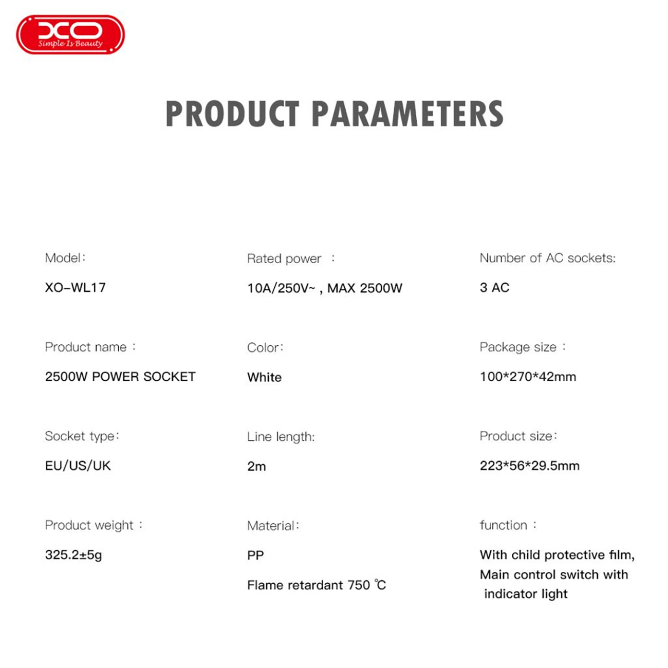 چند راهی برق 3 سوکت جانبی و کابل 2 متری ایکس او WL17