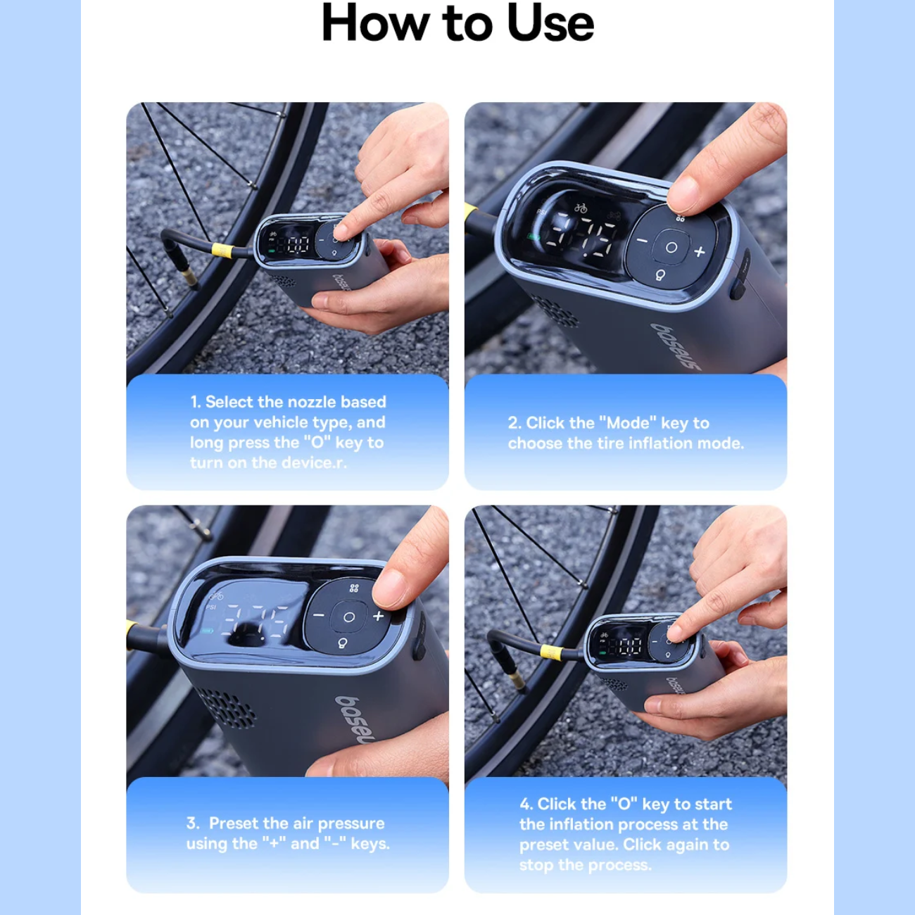 پمپ باد دیجیتالی شارژی دوچرخه و موتورسیکلت با چراغ قوه قابل حمل بیسوس C11169000121-00