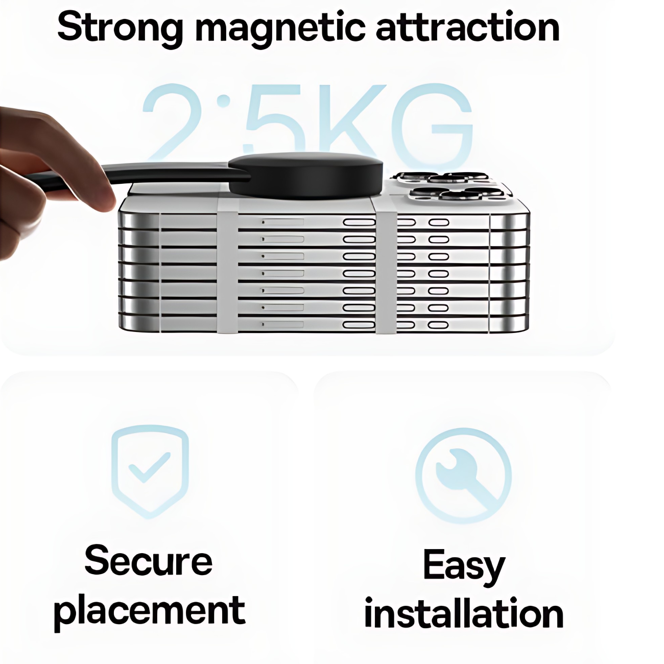 | نیروی جذب مغناطیسی | 18 نیوتن (بدون حلقه)، 25 نیوتن (با حلقه فلزی) |