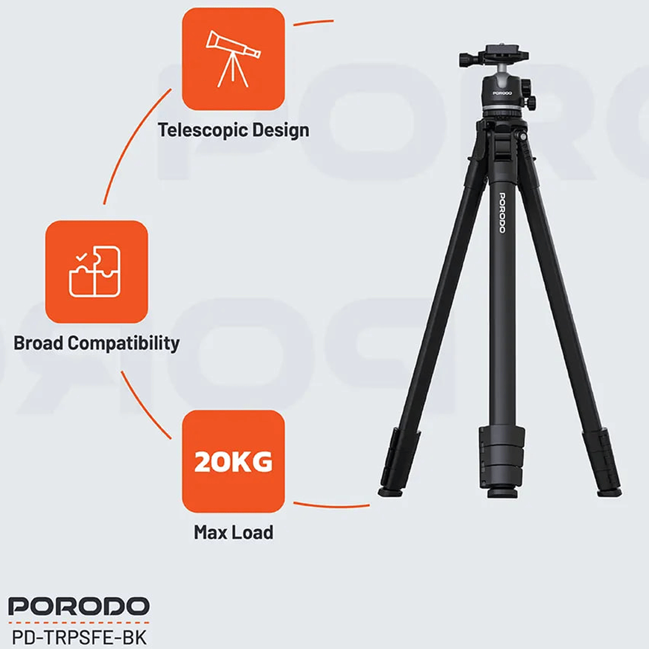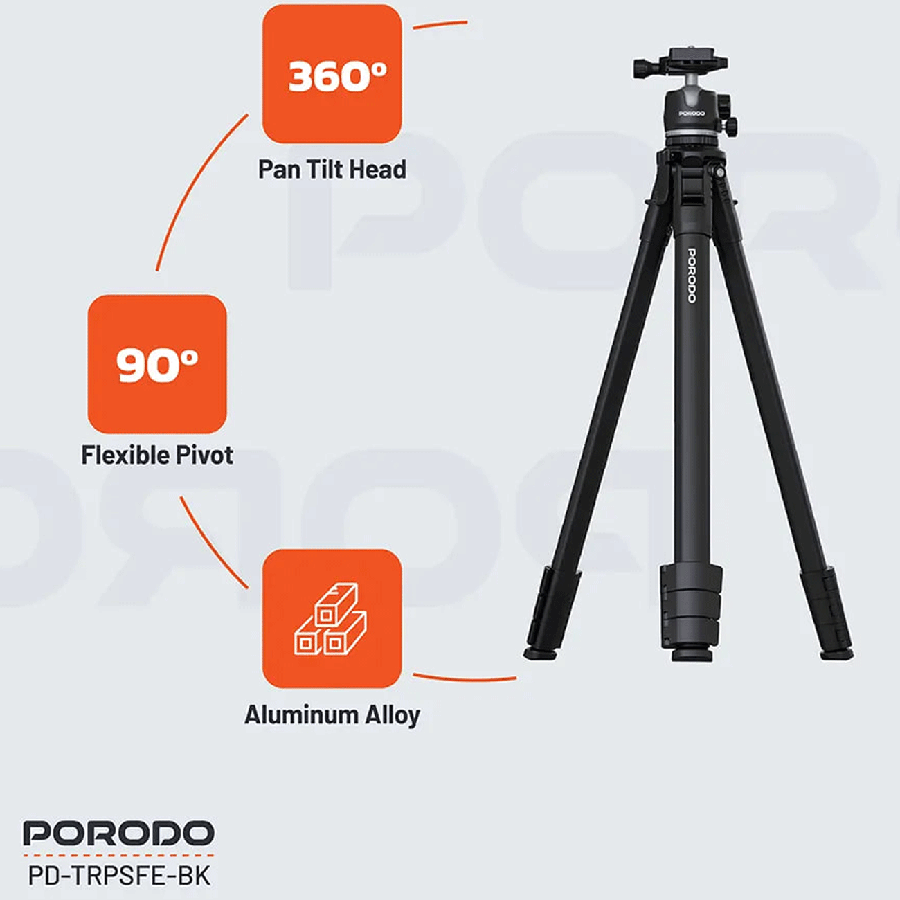 Porodo PD-TRPSFE Ultra-Light Aluminum Tripod - Black