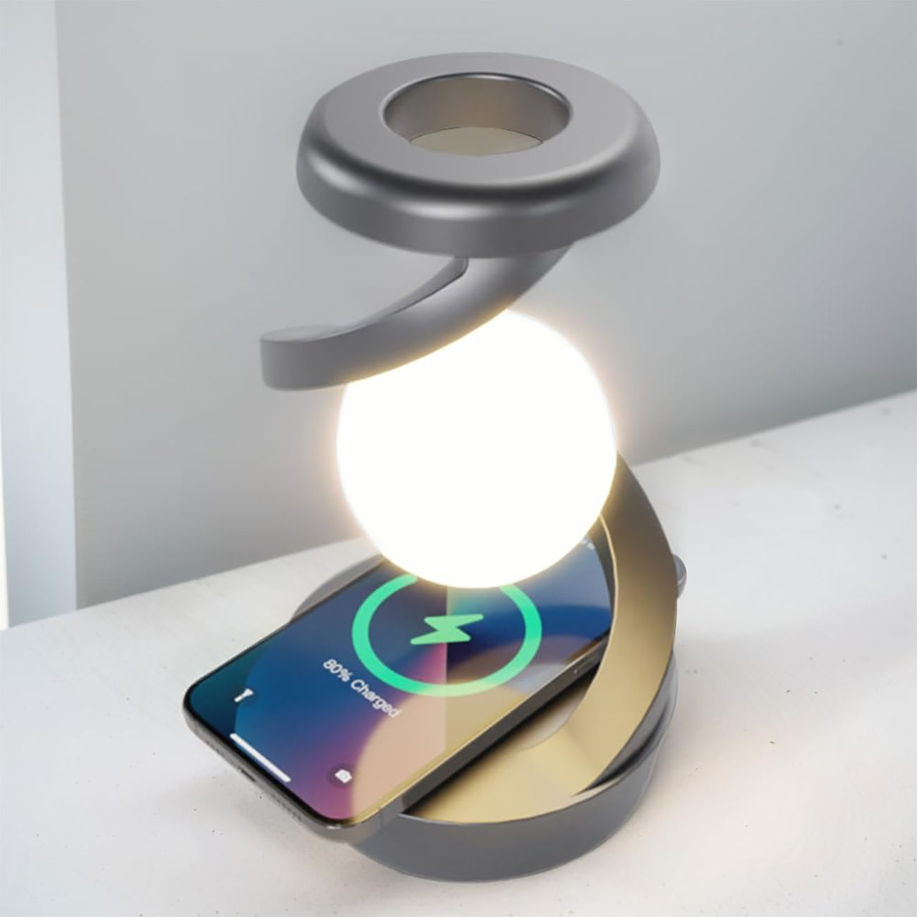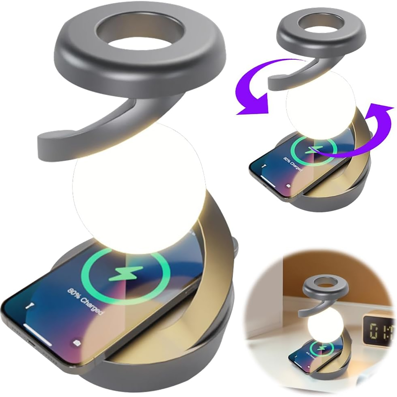 چراغ خواب شارژی طرح کره چرخشی و شارژ وایرلس Light Ball Lamp